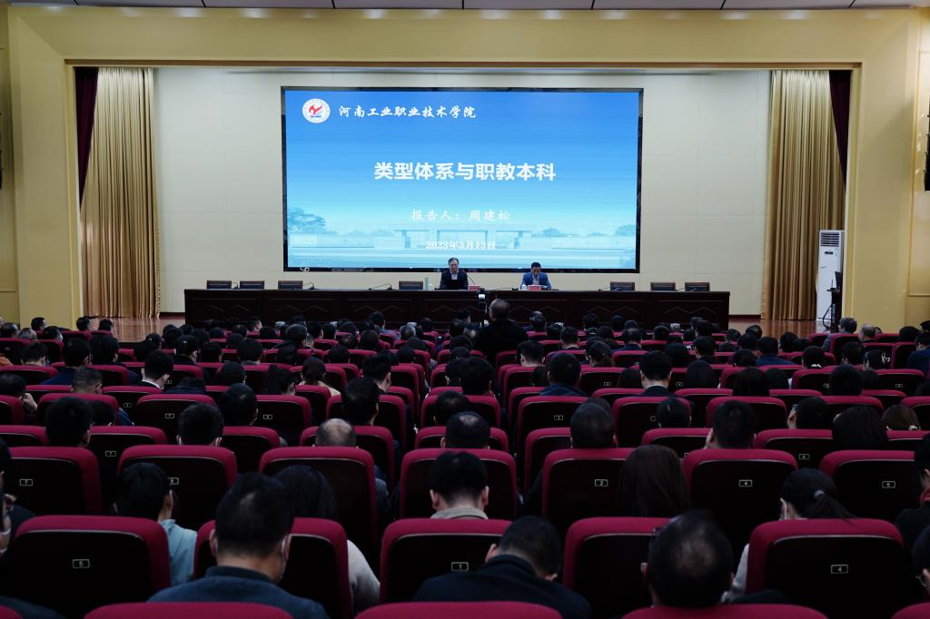 为进一步提升学校内涵建设,促进学校高质量发展,3月13日下午,学校特邀请中国高等教育学会职业教育分会理事长、浙江金融职业学院发展咨询委员会主任周建松教授来校作专题报告。校领导温道军、王伟、杜建根、王仁伟、贾庆成、屈保中、马小兵、侯同江出席,全体中层干部、骨干教师代表共400余人参加报告会。报告会由校长王伟主持。