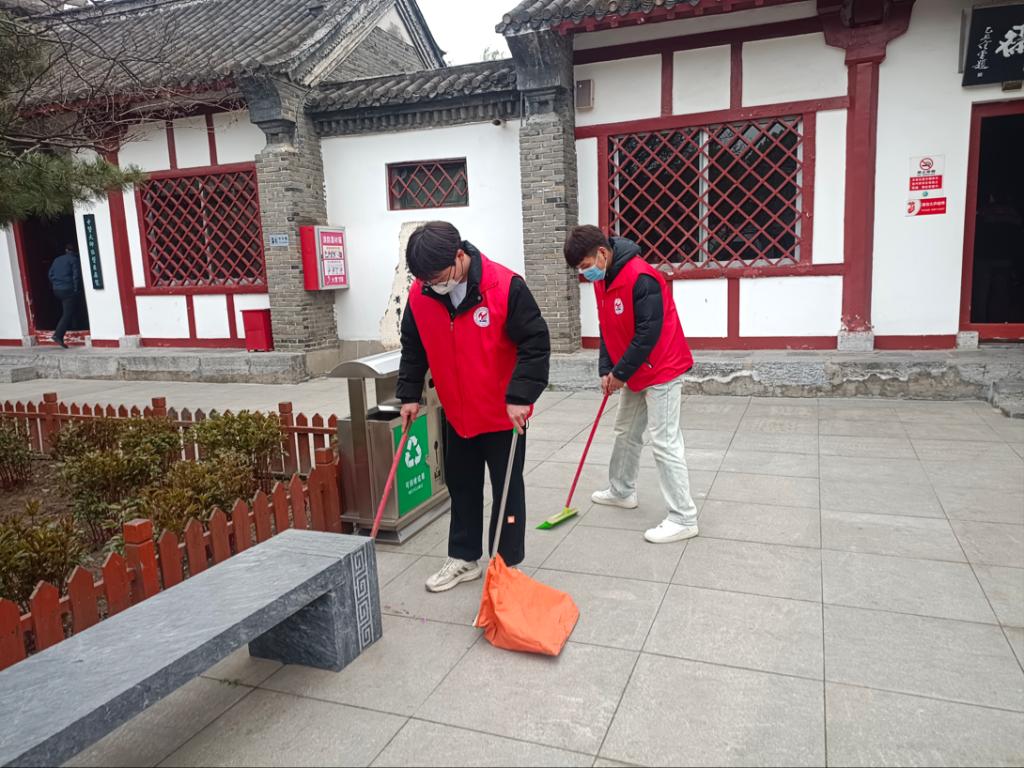 进入医圣祠,我院“知行合一”工作室的志愿者们在工作人员的带领下,近距离的参观了医圣祠,了解了张仲景的生平事迹及其在医学上的巨大贡献,学习了习近平总书记考察调研医圣祠时的重要讲话,感受了医圣高超的医术和高尚的品格,领略了博大精深的中医药文化。在对张仲景陵墓进行祭祀献花活动后,我院志愿者们积极的投身到医圣祠的打扫活动中。大家分工协作,认真清扫医圣祠内的卫生,不管是落叶,还是垃圾烟头,亦或是附着的灰尘,大家都能真正做到了清扫一处,清洁一处,靓丽一处。清扫活动中,志愿者们热情投入,团结协作,不怕脏、不怕累,展现出我院青年学子的良好精神风貌。清扫活动后,志愿者们协助工作人员,对前来参观的游客进行了亲切的接待,辅助工作人员进行相关知识的讲解。
