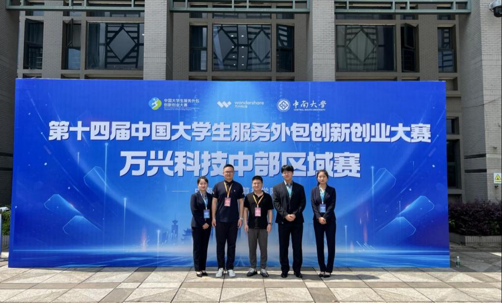 2023年5月26日至28日,第十四届中国大学生服务外包创新创业大赛中部赛区决赛在湖南长沙中南大学举行,本届中部区域总决赛包括河南、湖北、湖南、江西、安徽、广东、广西、贵州、云南1500余支团队报名参加,最终有127支队伍参加现场答辩。建筑工程学院建筑装饰与室内设计教研室主任任华楠、教师李果带领学生刘春辉、许世豪、古韵涵参加,获得一等奖第二名,顺利进入国赛。