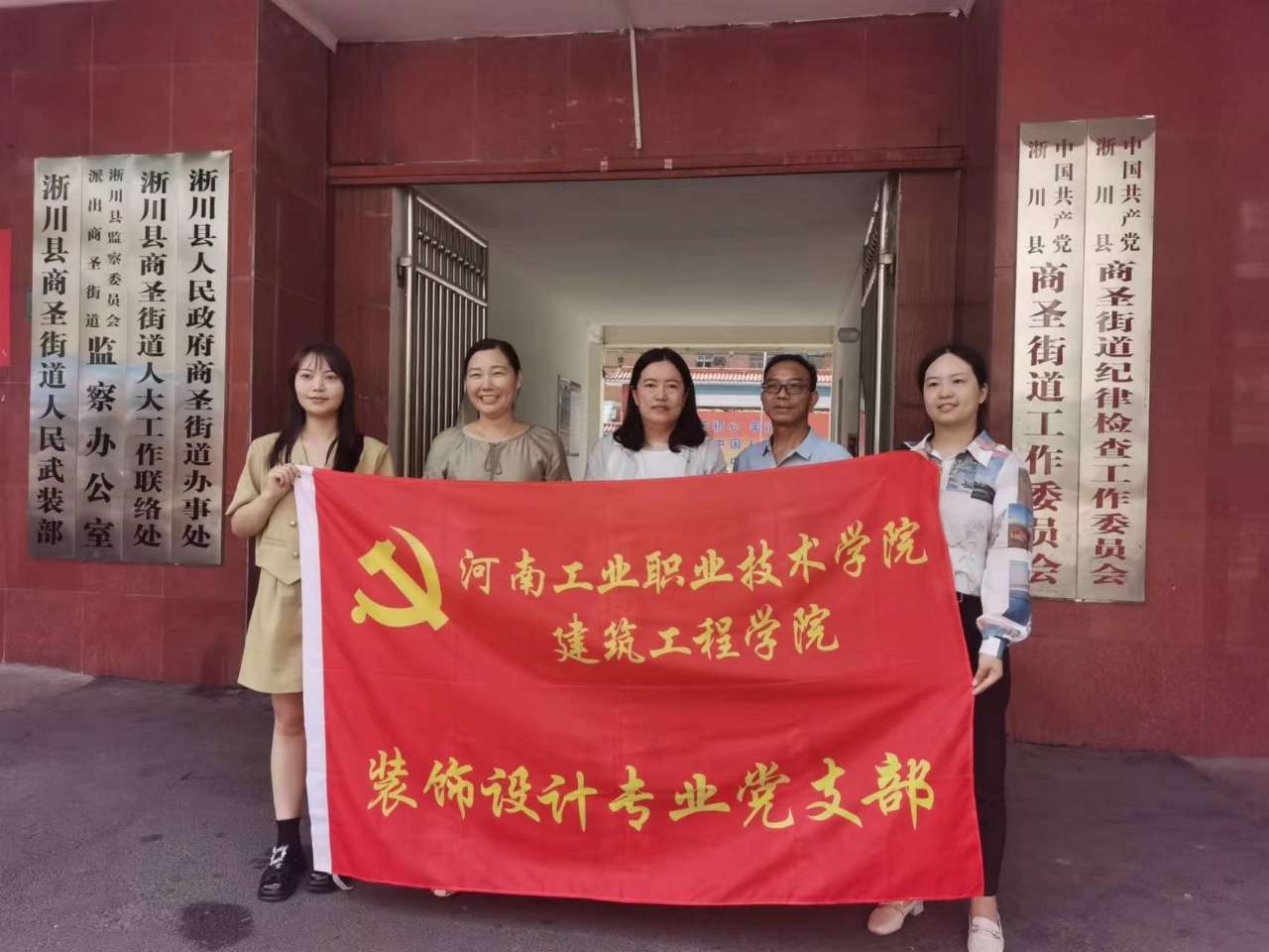 7月23日,我院装饰设计专业党支部骨干教师王玉卓、马同芳、李雅然、王晓茹等,到淅川县商圣街道办事处开展乡村振兴科技帮服务,对辖区街道美化亮化和环境氛围进行策划设计。