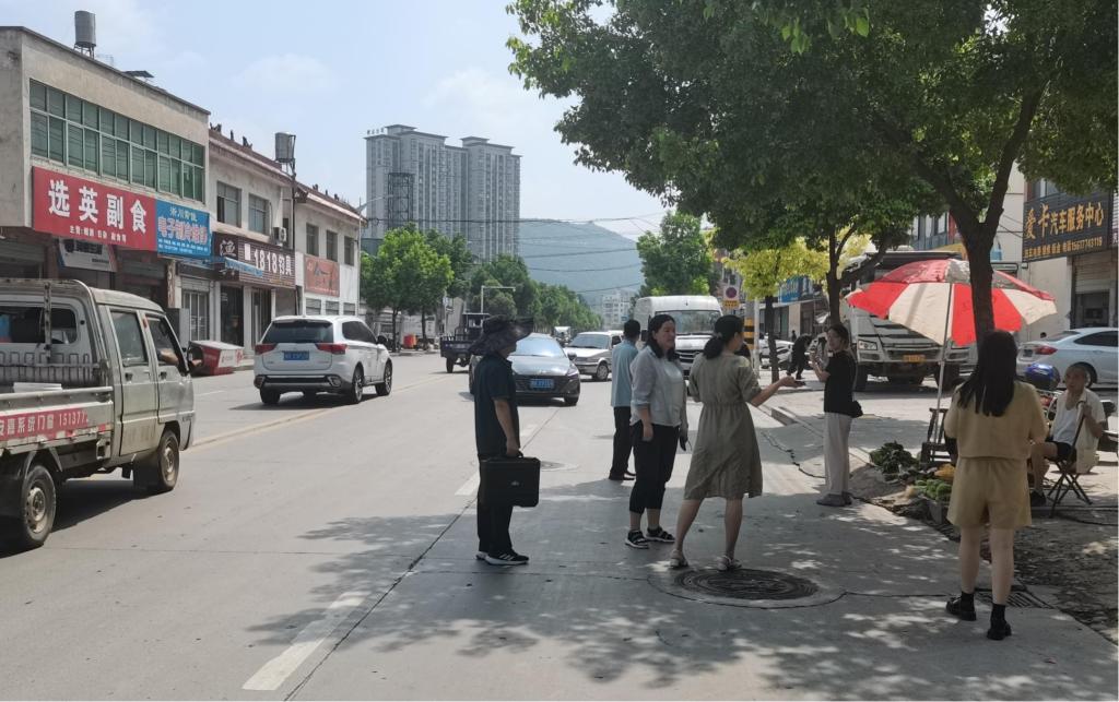 随后,科技帮扶团队对商圣街道展开了实地调研,现状分析,就立面提升、广场设计、停车规划、牌坊设计等方面摸清了基本需求,为即将展开的意向设计工作打下基础,并就下一步的具体设计内容与街道工作人员进行了深入交流。