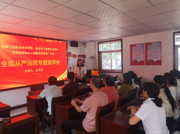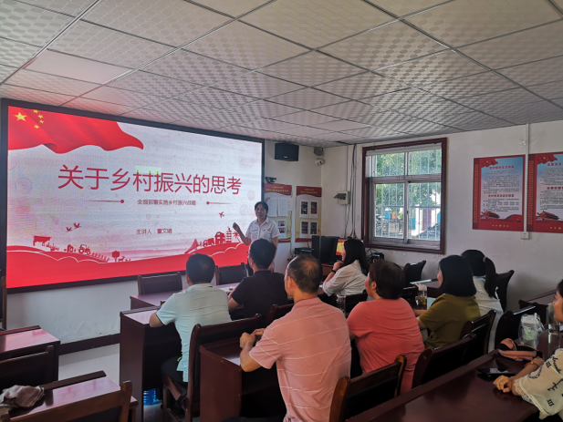 活动中,王玉卓首先介绍了本次活动的意义和总体安排。首先,王玉卓进行了“全面从严治党”专题宣讲,从全面从严治党的深远意义、新时代十年来全面从严治党成效显著和全面从严治党永远在路上三个方面解读了全面从严治党相关理论。然后,董文娟为大家做了“关于乡村振兴的思考”宣讲,从“什么是乡村振兴战略、如何抓住机遇实现乡村振兴、村干部如何在乡村振兴中有所作为”三个方面解读了乡村振兴的一些思考,并解读了国内外乡村振兴的优秀案例。