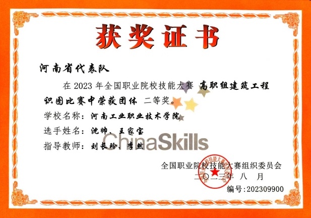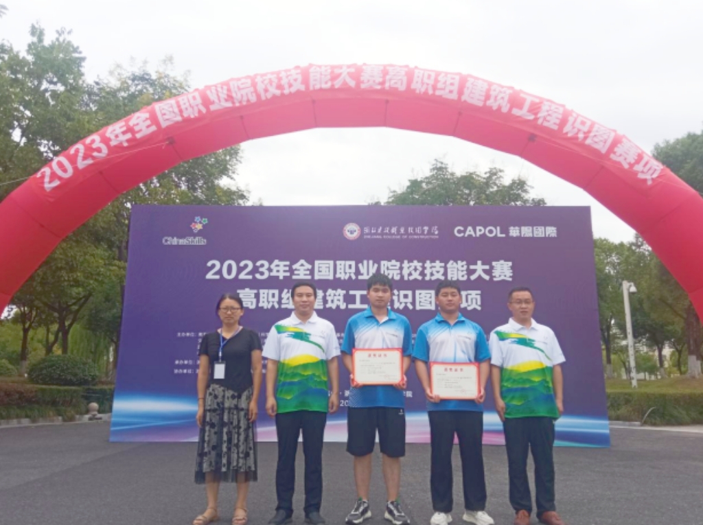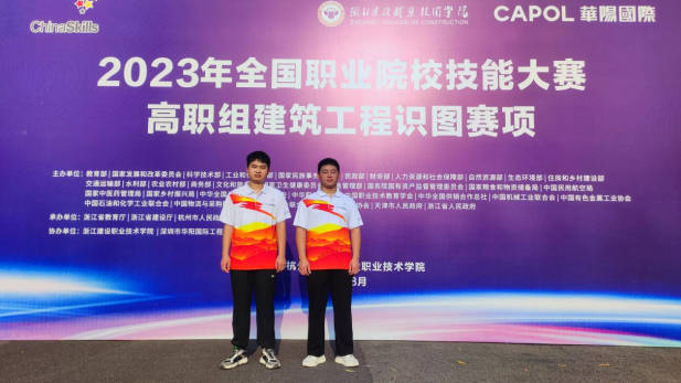 8月26日-28日,2023年全国职业院校技能大赛(高职组)建筑工程识图赛项在杭州举行,共有来自全国各省、市、自治区的73支参赛队,146名选手同台竞技。经过激烈角逐,由建筑工程学院沈帅、王家宝同学组成的参赛队,在刘长玲、李然、谢颖川等教师团队的指导下,凭借过硬的技能水平和良好的心理素质,最终以全国第12名的成绩荣获二等奖的佳绩。