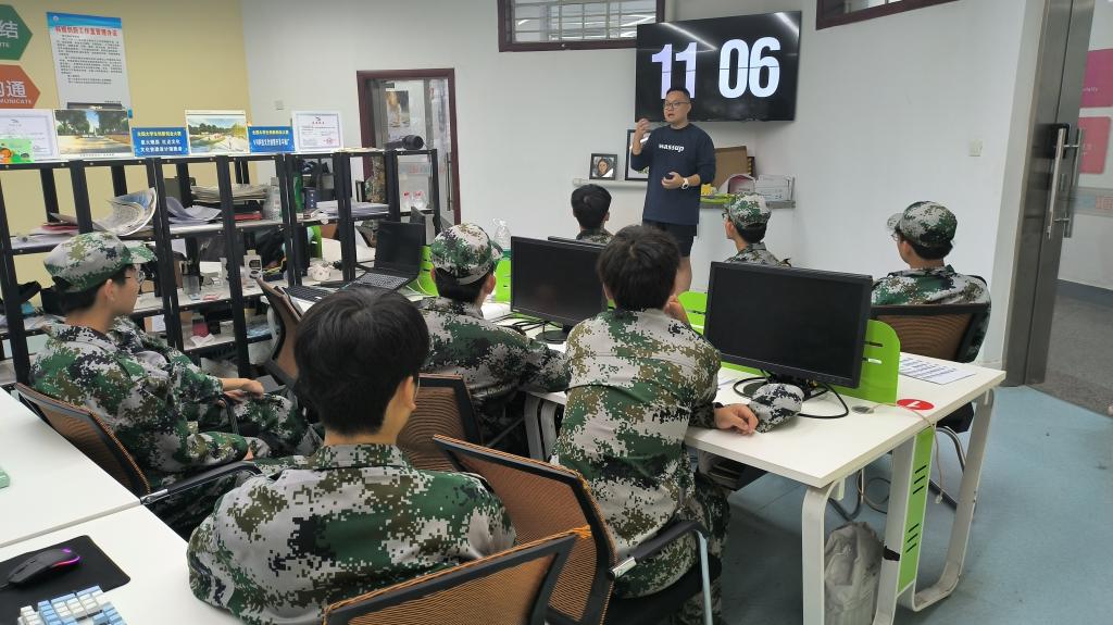 17日上午大礼堂的入学教育结束后,各班级在军训教官和带班学长的引导下,来到虚拟仿真实训基地各班级分配的实训室中,由教研室主任及各专业教师进行“师生畅聊职业规划”活动。活动中,老师和同学们从职业认知、职业能力、职业发展、实习就业等方面做了深入沟通,帮助和引导新生在大学期间学会充分认识自己、强化专业学习动力,明确自我的职业发展规划。