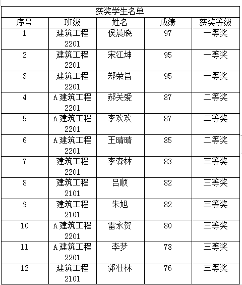 本次竞赛营造了学习专业知识、钻研专业技能的良好氛围,强化了参赛学生关于“大土木”专业知识、专业技能,达到了“以赛促学、以赛促教、以赛促改”的教学策略,从而提高专业人才培养质量,提高学生综合应用能力,锻炼学生吃苦耐劳、敢于拼搏、精益求精的工匠精神。