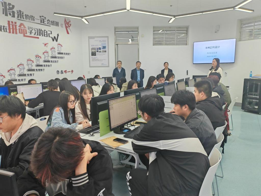 建筑工程学院于10月20日下午,在建筑工程虚拟仿真实训基地2101和2103成功举办了“建美中原BIM正向设计”校赛,学校教务处相关领导莅临比赛现场,给学生们加油鼓劲,并针对赛项题目的设置和比赛流程提出了指导意见。