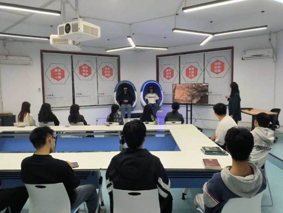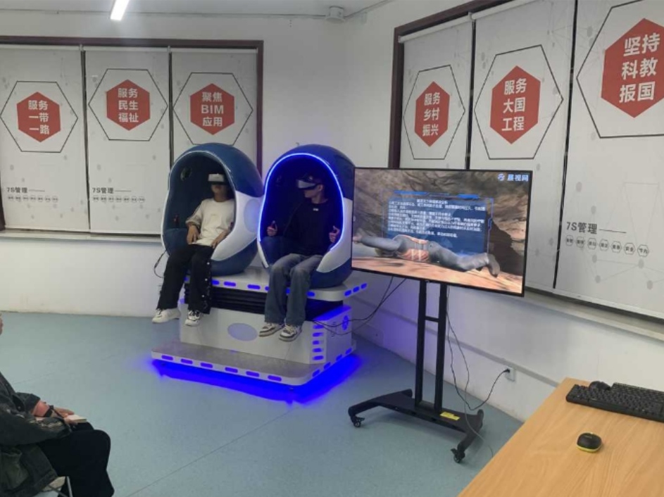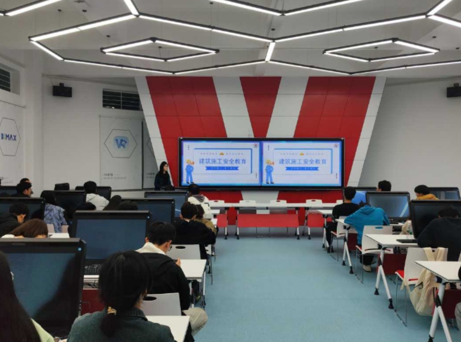在建筑行业,施工安全教育既是职责也是使命,是预防事故、保障生命的首要任务。在此次活动中,富娆老师首先在建筑装配虚拟仿真实训室为学生详细介绍了施工过程中经常遇到的事故场景,包括物体打击、高空坠落、机械伤害和土方塌陷等。随后,引导学生们来到建筑安全虚拟仿真体验室,借助VR技术,进入虚拟的建筑工地环境,身临其境地体验危险场景所带来的紧张与冲击。在交互式学习场景里,亲自操作虚拟工具和设备,学习正确的安全防护方法,提高安全意识和应对能力。