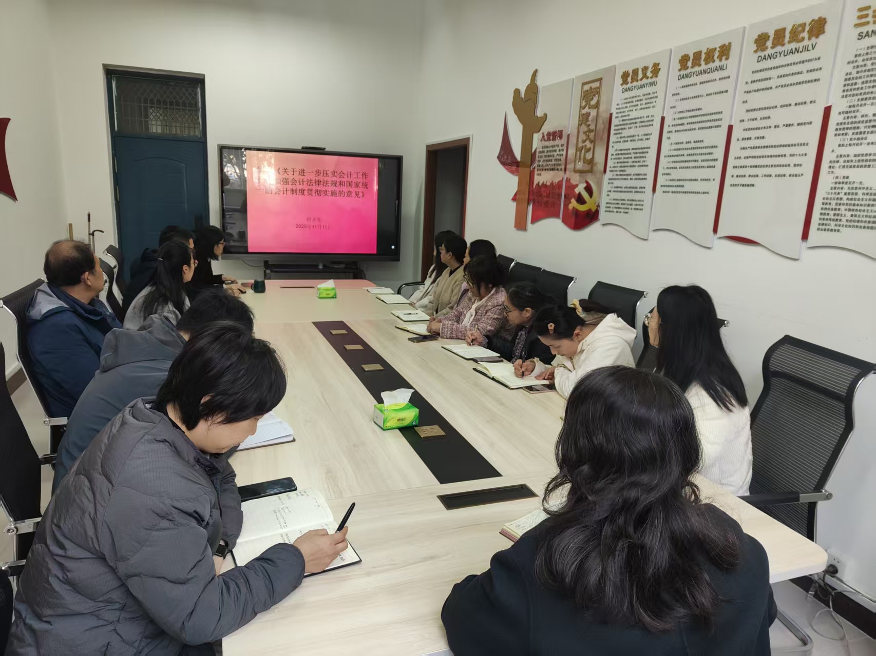 为深入贯彻落实会计法律法规和国家统一的会计制度,进一步压实会计工作责任,提升财务工作规范化水平,11月11日,财务处组织全体工作人员召开专题学习会议,集中学习《关于进一步压实会计工作责任加强会计法律法规和国家统一的会计制度贯彻实施的意见》(财会〔2025〕25号)文件精神。