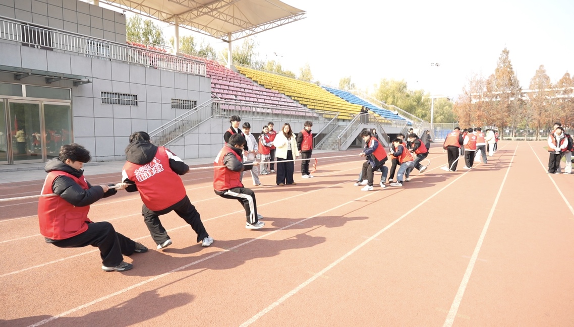 在志愿者宣誓环节,全体青年志愿者肃立挺胸,以饱满的热情和真挚的情感宣读誓言,一字一句,践行志愿服务的初心承诺。志愿主题留言环节中,志愿者代表们依次在留言墙上写下对志愿活动的感悟或对伙伴的鼓励,在活力满满的打卡点拍照留念,用镜头定格热忱与喜悦,用文字记录志愿服务路上的闪光起点。随后的趣味拔河比赛将活动推向高潮。各学院志愿者代表、大学生雷锋营和校学生会组成的十支队伍展开了一场力量与协作的比拼。队员们心往一处想、劲往一处使,紧握长绳、奋力拼搏,展现了志愿服务中最可贵的团结精神。活动最后,志愿者们以躬身实践诠释志愿担当,开展校园文明巡查,将铿锵誓言转化为实际行动,从身边小事做起,让志愿服务融入日常、落地生根。