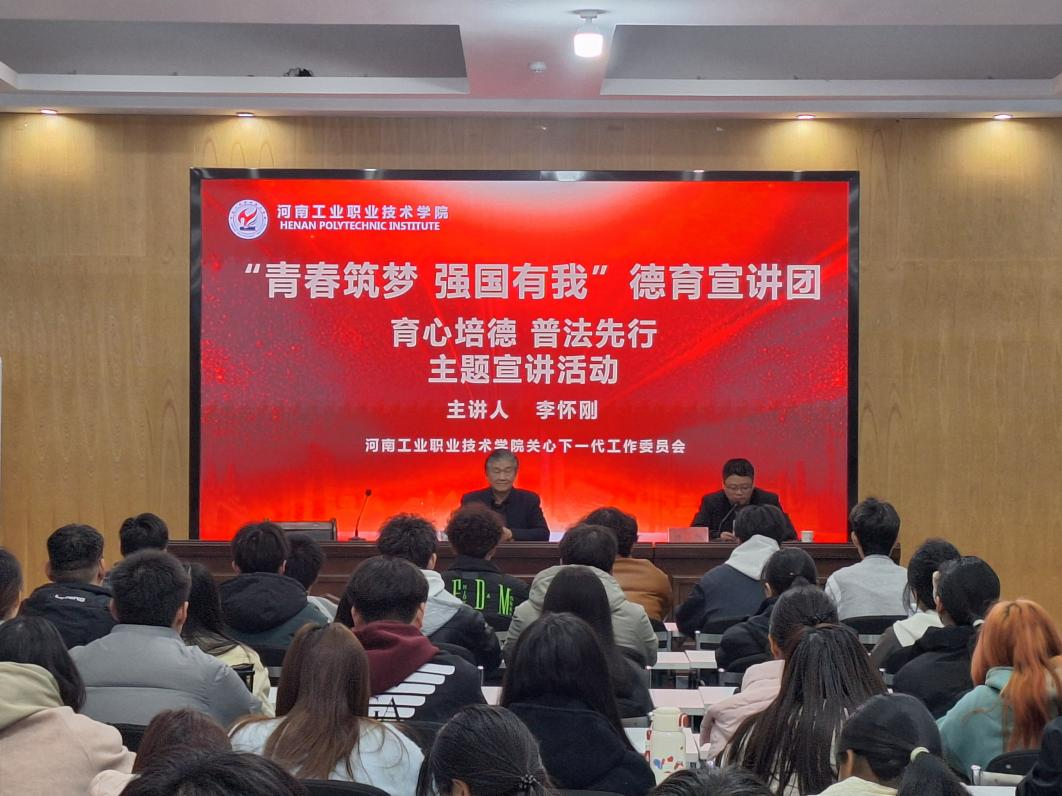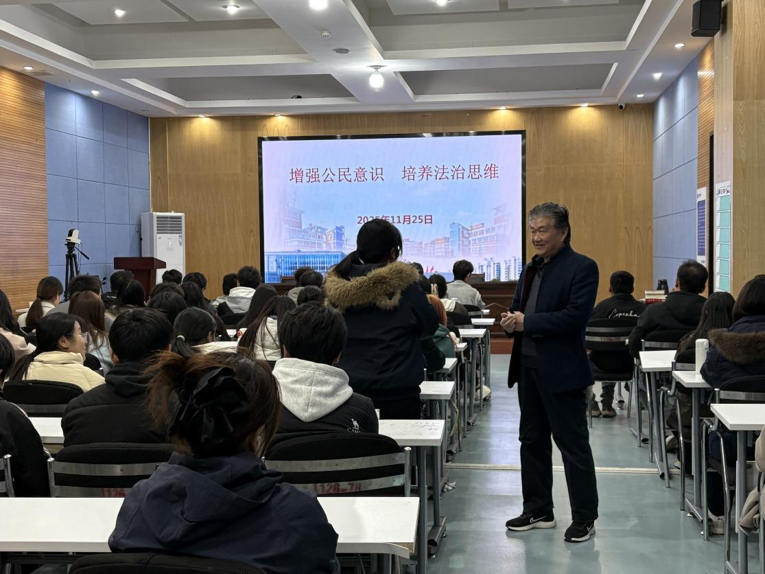 为加强青年学生思想道德建设,提升法治素养与心理健康水平,引导学生树立正确价值观,学校关工委组织开展“青春筑梦 强国有我”主题系列讲座,11月25日下午,讲座特邀学校德育宣讲团李怀刚教授作“树立公民意识,增强法治思维”专题报告。本次活动由电子信息工程学院党总支副书记杨旭主持,学院辅导员及学生代表齐聚T1126报告厅,共同聆听这场思想盛宴。