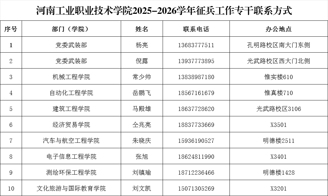 按照国防部征兵办公室、省军区、省教育厅和南阳市军分区征兵工作精神,从12月6日起,依托“全国征兵网”,开展我校2026年上半年大学生征兵报名工作,现就有关事宜通知如下:
