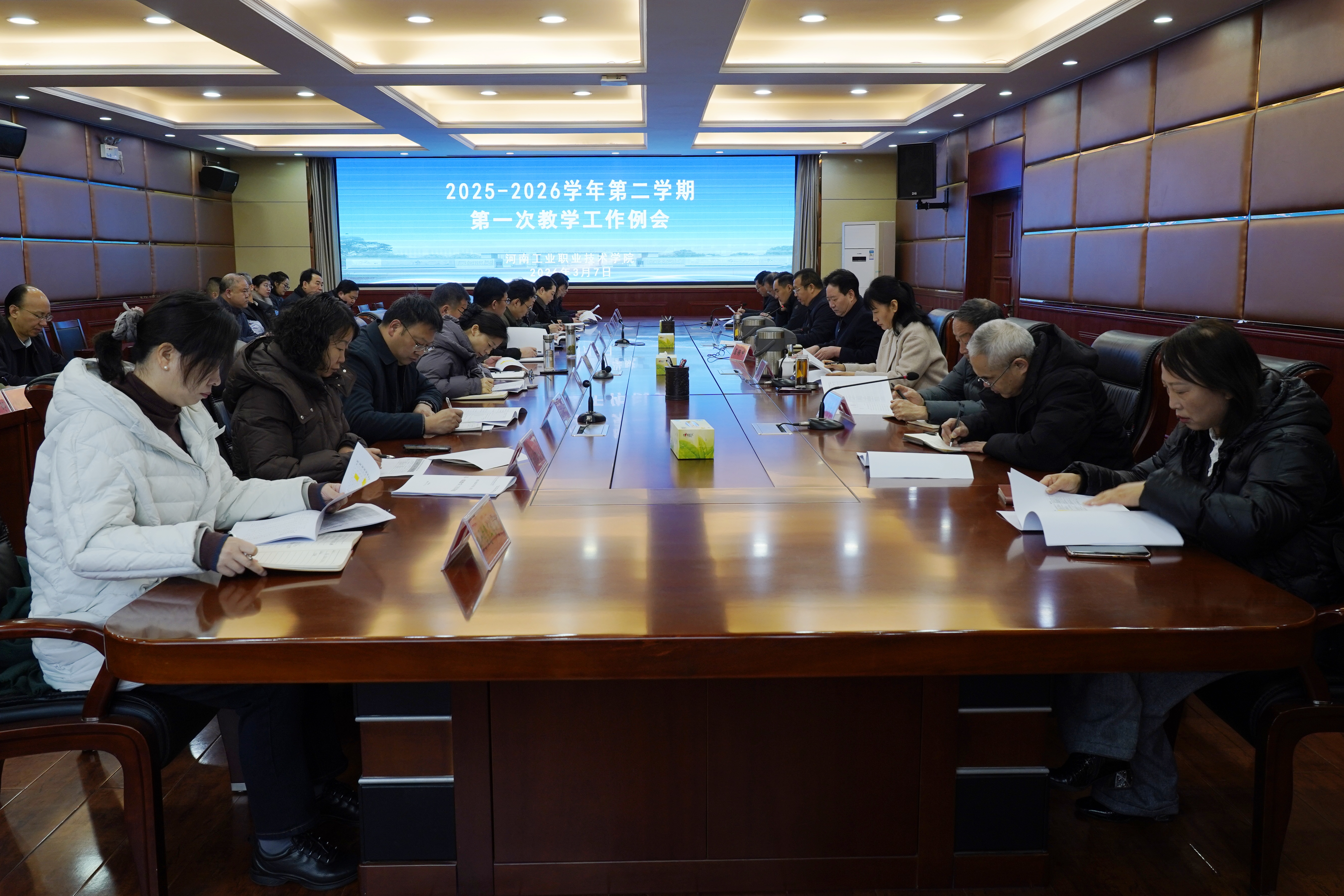 屈保中对会议进行总结,首先对学期初教学准备工作的安排表示肯定,指出要紧抓落实,各职能部门要强化组织、主动担当、发挥带头作用,保证本学期教学工作顺利开展。随后,他带领与会人员深入学习了《教育部关于深化职业教育教学关键要素改革的意见》(教职成〔2026〕1号),围绕专业、课程、教材、教师、实习实训五大教学关键要素,深入剖析教学改革重点,并要求贯彻落实好文件精神,聚焦教学关键要素推进改革。他强调,专业建设方面,要依托数据平台为人才培养方案提供支撑,做到动态调整专业设置,聚焦重点领域打造特色专业,要深入剖析升本专业、科学谋划本科专业布局,以数据支撑专业计划调整,合理优化学生课时安排。课程建设方面,要科学搭建课程体系,升级课程内容,对接龙头企业典型生产任务开展职业分析,梳理知识点与技能点、绘制课程能力图谱,推进课程综合化、模块化、项目化改革,厘清课程逻辑与能力要求,挖掘行业与职业特色思政元素,建设课程思政资源库和教学案例库,持续打造国家级精品课程。教材建设方面,要优化教材呈现形式,研发数字教材,抢占职业本科、职普融通、贯通培养及职教出海教材建设高地。教师队伍建设方面,要精准开展培养培训,提升教师教学、教科研、专业理论与实践能力,通过听课、评课、比课等活动完善教学评价体系,推动教师常态化参与行业交流、技术认证与企业实践,开发数字化培训资源,强化教师数字技术应用能力。实习实训方面,要升级改造实训基地,加强虚拟仿真实训基地建设,打造区域开放型产教融合实践中心,聚焦关键技术领域深化产教融合。最后,他指出,我校已迈入职业本科发展新赛道,要从跟跑转向领跑,立足现有基础抓实内涵建设,全面提升学校办学核心竞争力。