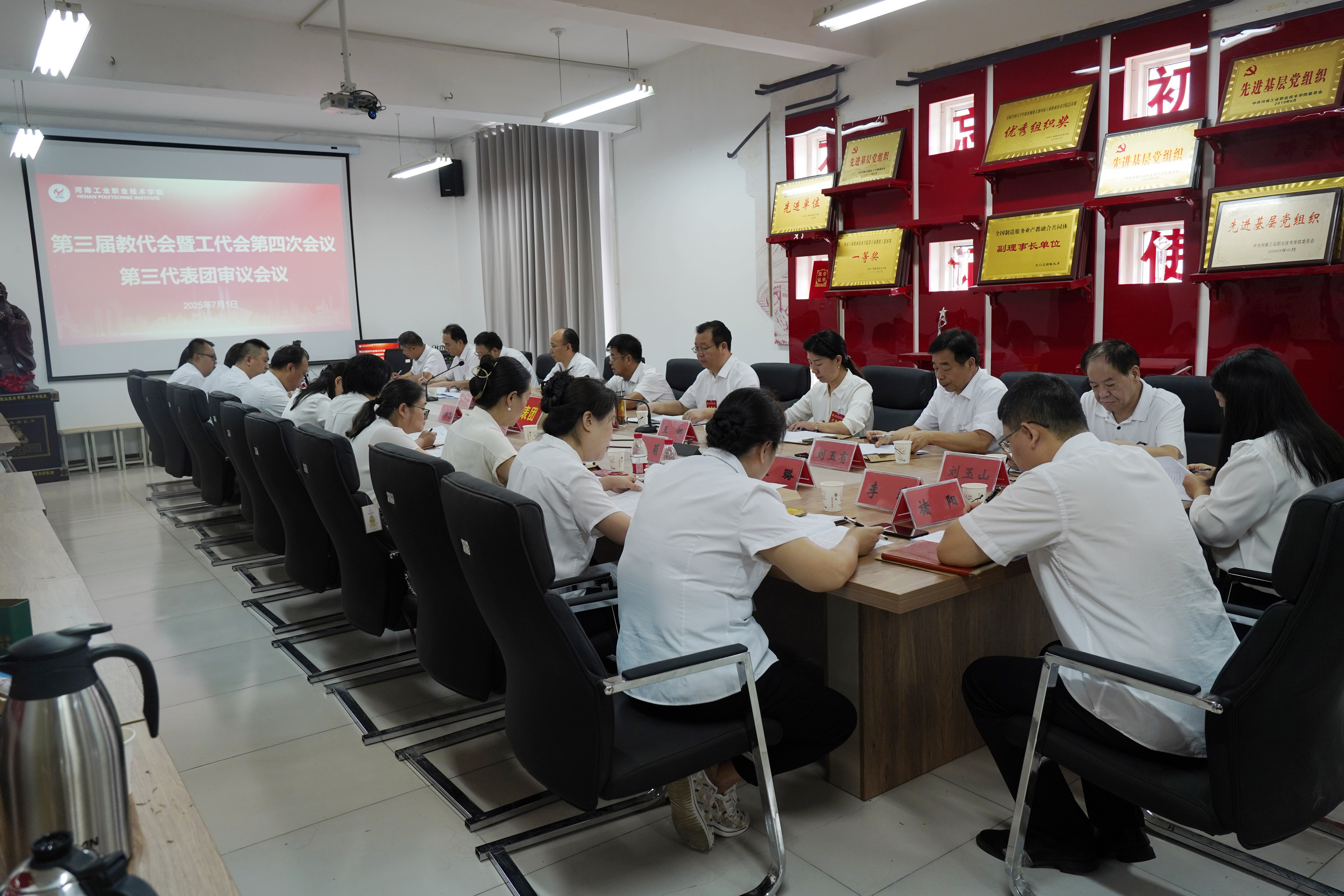 7月1日,学校第三届教职工代表大会暨工会会员代表大会第四次会议在孔明路校区大学术报告厅举行。校领导屈保中、马小兵、贾庆成、朱成俊、冯书丽、王宏颖和百余名代表参加会议。