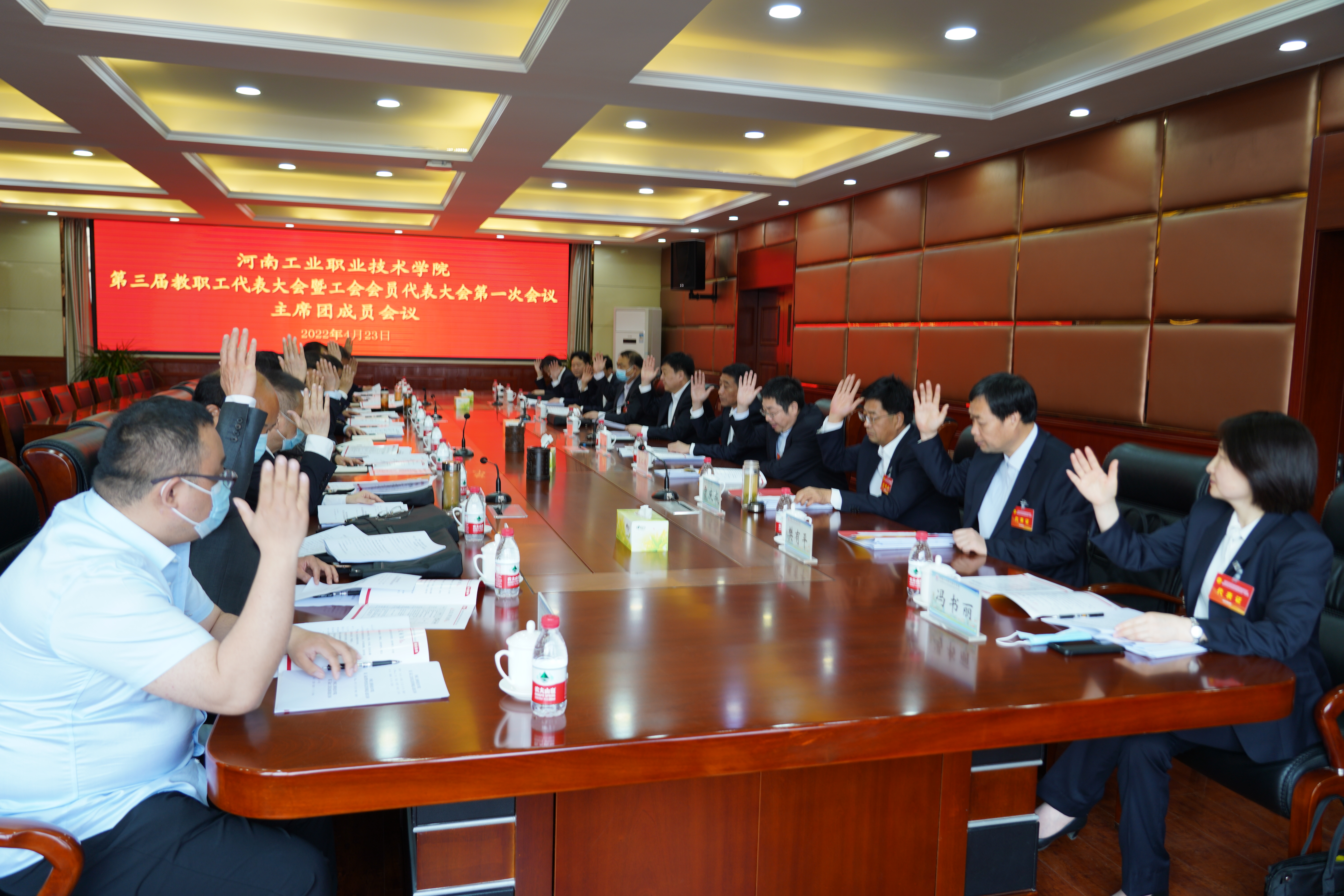 河南工业职业技术学院第三届教职工暨工会会员代表大会第一次会议完成各项议程,在激昂的《国际歌》中胜利闭幕。