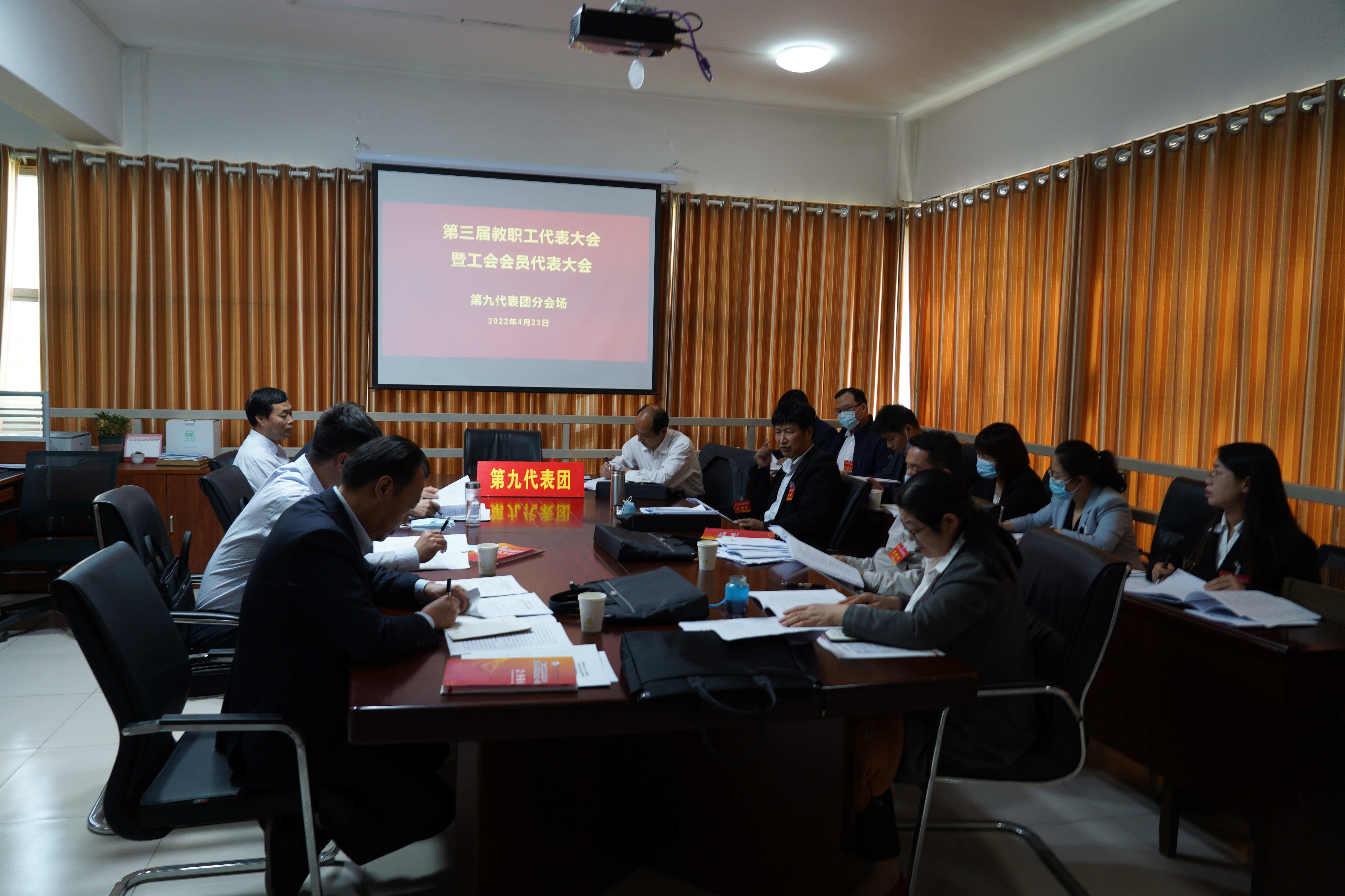 随后,学校领导和各代表团一起审议讨论校长行政工作报告、学校“十四五”事业发展规划和其他报告,对第三届工会委员会、第三届女工委员会和其他候选人建议名单进行酝酿。各位代表们畅所欲言,说成绩、提建议、谋发展、话民生,分析梳理了学校当前发展面临的机遇和挑战,希望全校师生稳中求进、在变局中争取主动,保持追求卓越、争创一流的劲头,高质量完成“十四五”规划年度目标。