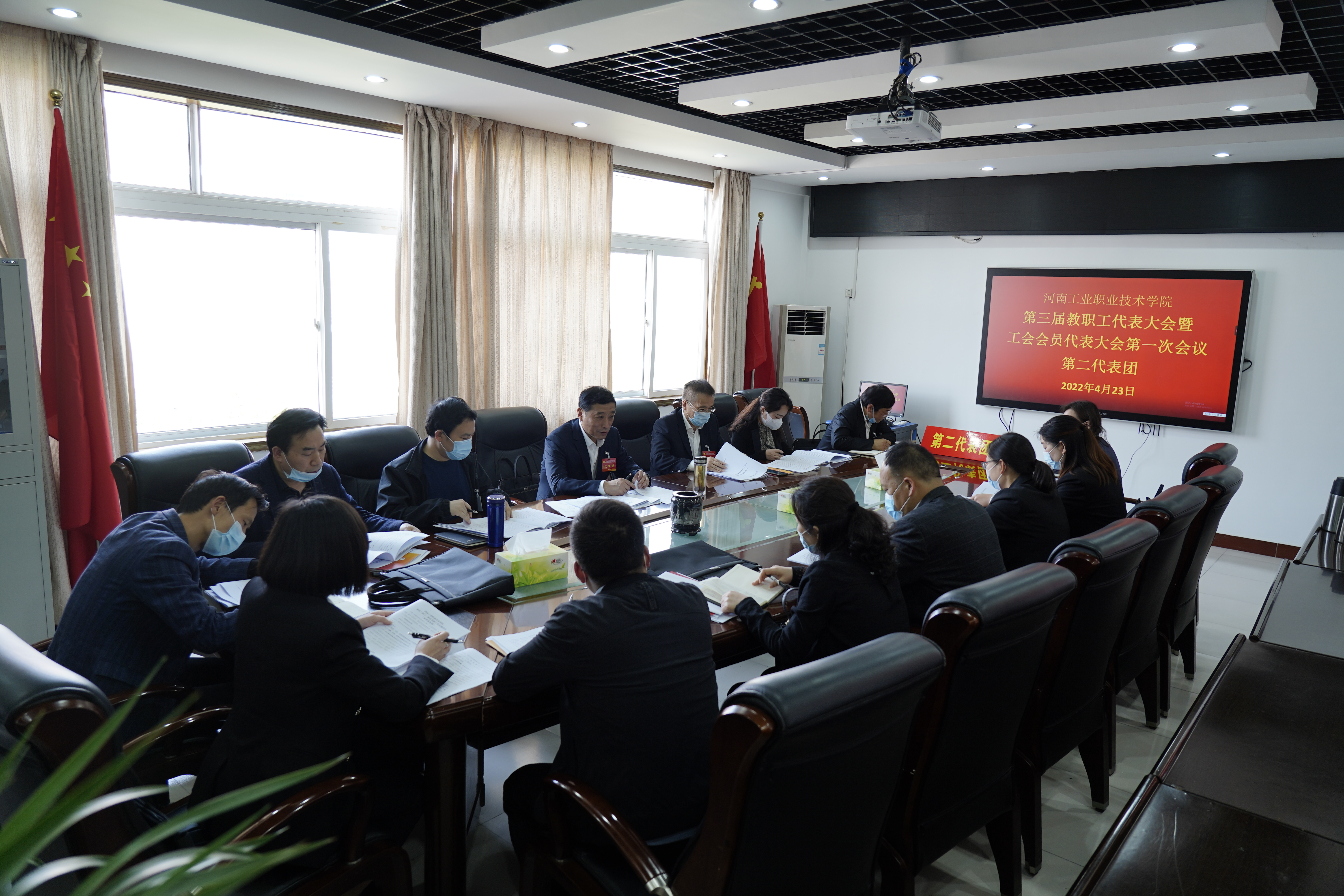 经过分团讨论,下午16点大会主席团全体成员在办公楼四楼召开第二次会议,听取了九个代表团团长对大会五个工作报告、学校“十四五”事业发展规划、学校绩效考核工作实施办法、第三届工会委员会和工会经费审查委员会委员候选人名单、第三届女工委员会和教代会六个专门委员会成员建议名单讨论情况的汇报,讨论并表决《第三届工会委员会和工会经费审查委员会选举办法》(草案)、第三届工会委员会、工会经费审查委员会委员候选人名单(草案)、大会总监票人、监票人建议名单、大会总计票人、计票人建议名单、《河南工业职业技术学院第三届教职工代表大会暨工会会员代表大会第一次会议决议》(草案),均全票通过。