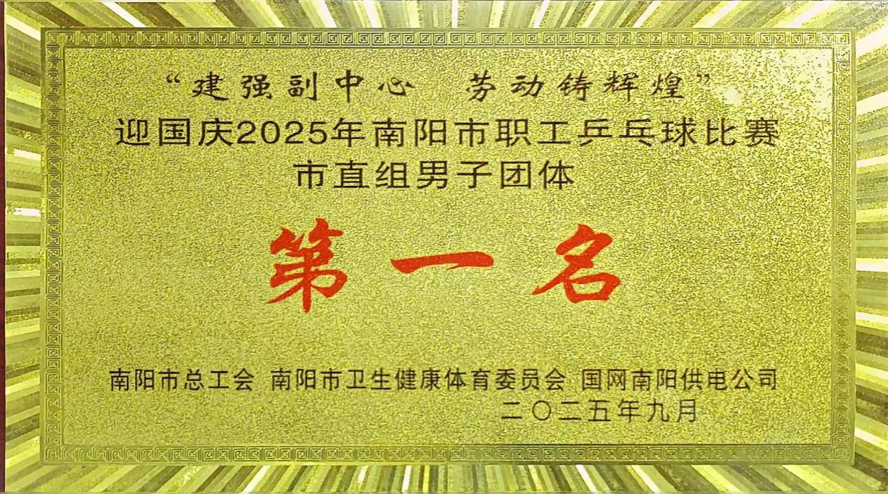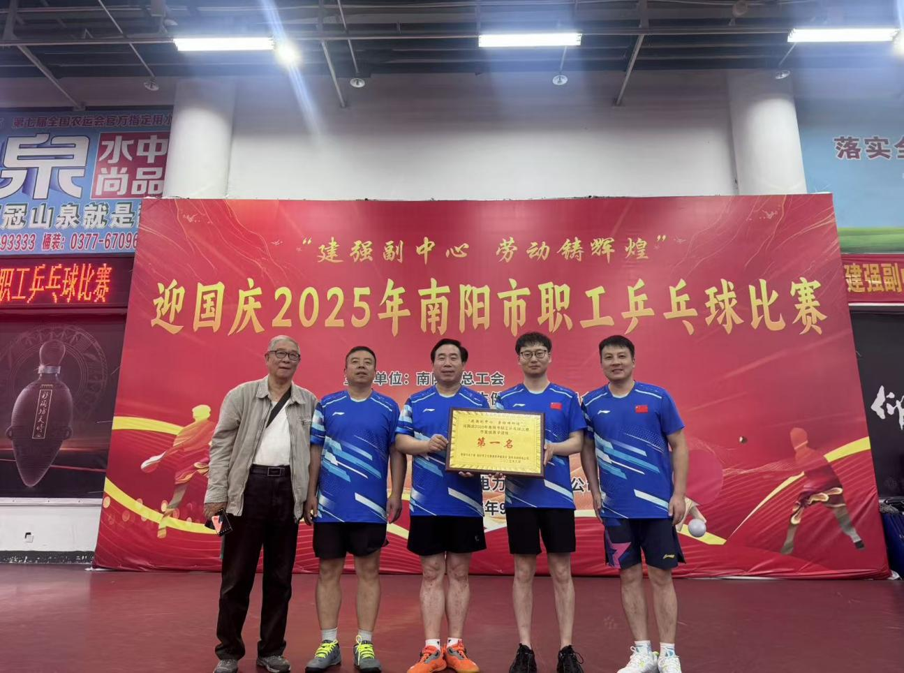 淯水汤汤,桂子飘香。9月25日下午,由南阳市总工会、市卫健体委、国网南阳供电公司联合主办的“建强副中心 劳动铸辉煌”迎国庆南阳市职工乒乓球比赛在市体育中心乒乓球馆圆满落幕。我校教职工代表队凭借精湛的技艺、顽强的拼搏精神与默契的团队配合,经过两天奋力拼搏,在全市90多支代表队、430余名选手的激烈角逐中一路过关斩将,最终勇夺团体冠军,充分展现了我校教职工昂扬向上的精神风貌。