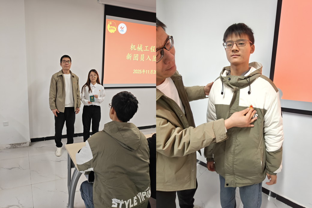 为进一步加强共青团组织建设,引导广大青年坚定理想信念、传承红色基因,11月20日中午,机械工程学院在惟实楼L2612教室隆重举行2025年秋季学期新团员入团仪式。