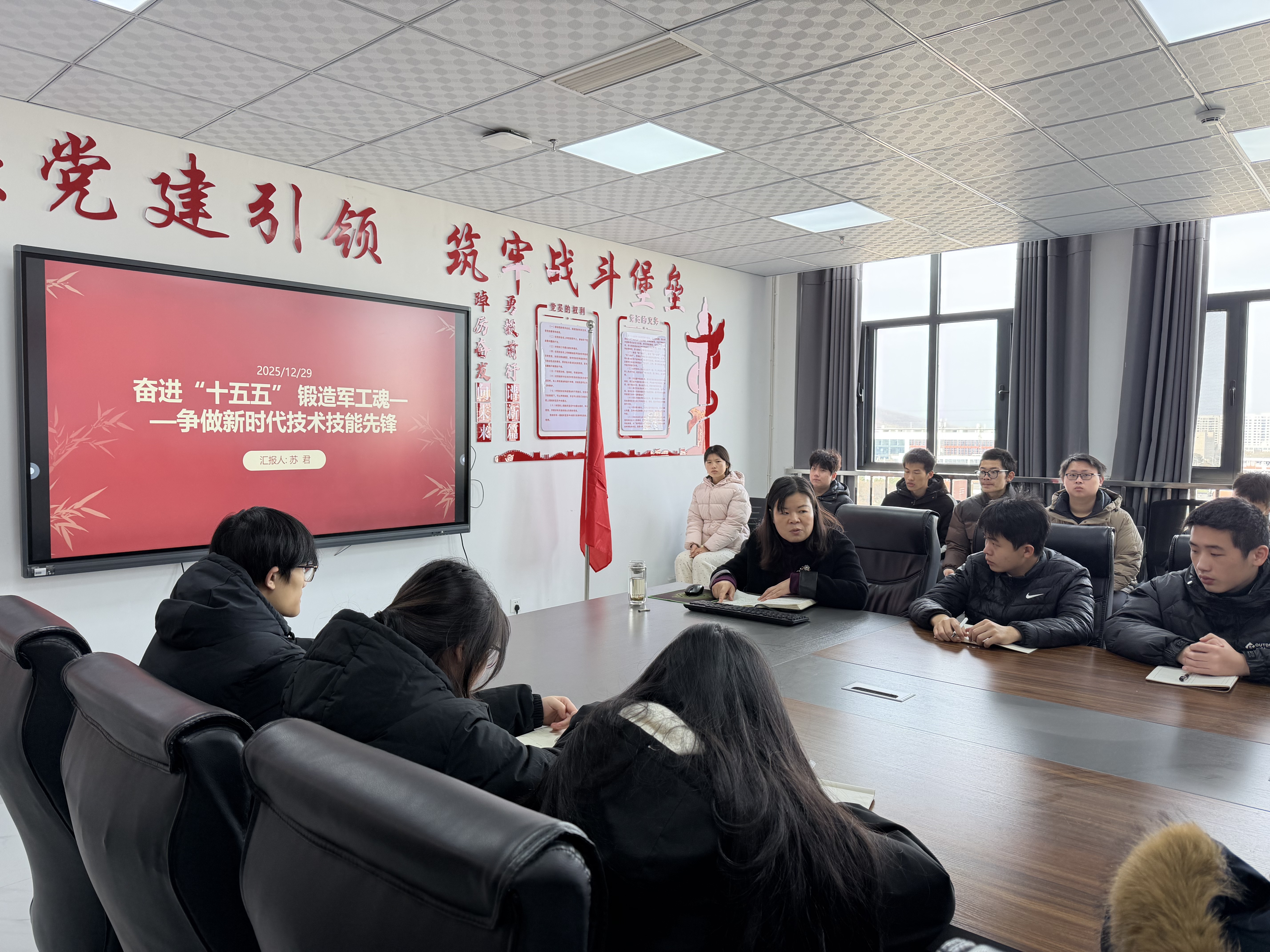 培训期间,学院党总支书记苏君、学生第一党支部书记王旭、学生第二党支部书记黄卓为大家分别作专题报告讲座,讲座主题涵盖《中国共产党的指导思想》《奋进“十五五”,锻造军工魂——争做新时代技术技能先锋》《中国共产党的性质和宗旨》《决胜“十四五”,奋发向前行》《不忘入党初心牢记入党使命》《加强党性修养端正入党动机》等。