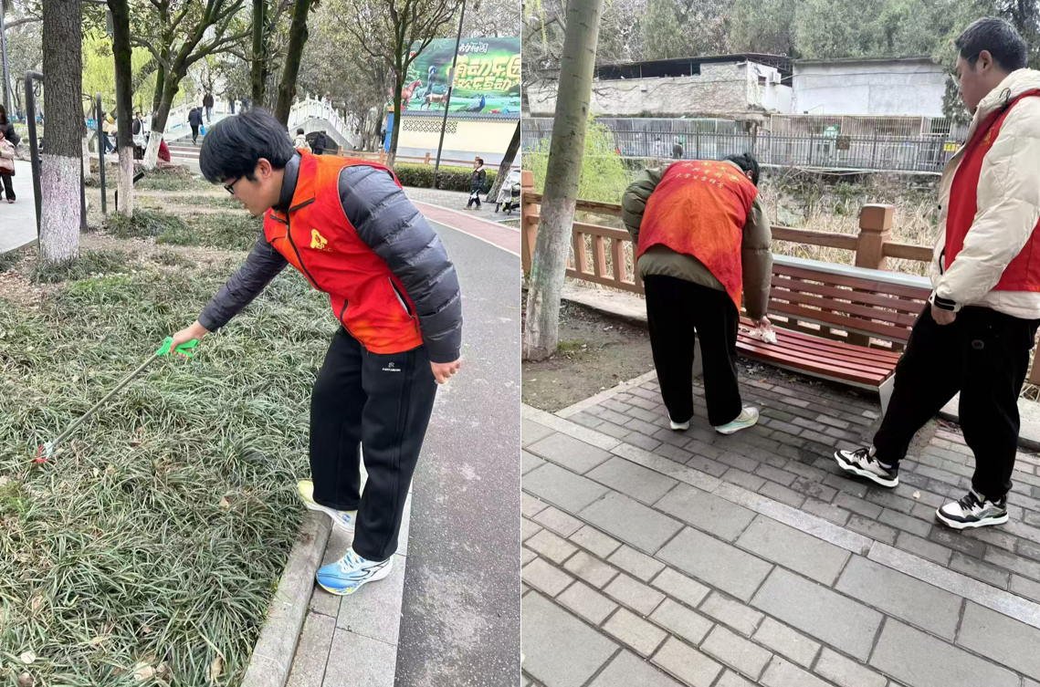 守护绿水青山,共建美丽家园。在户外公益环节,学院的志愿者们走出校园,分别前往市人民公园、白河湿地公园及月季公园,开展了以“公园护绿”“保护母亲河”及“生态文明宣讲”为主题的系列活动。志愿者们手持清洁工具,认真清理公园和河岸周边的垃圾杂物,细心擦拭公共设施,以实际行动美化环境。同时,他们还积极向过往市民发放环保宣传单,耐心讲解生态保护知识,倡导绿色低碳生活方式,呼吁大家共同参与到守护蓝天碧水、建设美好家园的行动中来,展现了当代大学生良好的精神风貌和社会责任感。