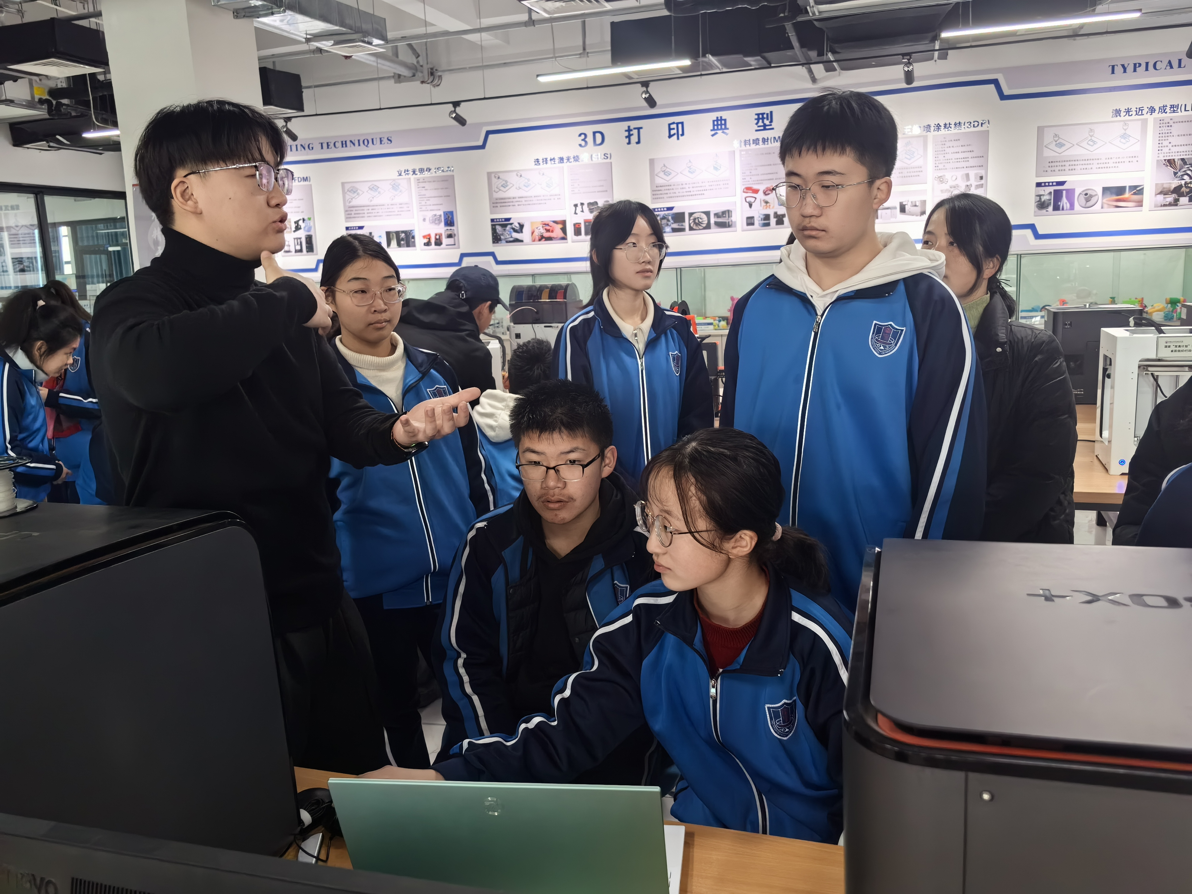 发挥专业特长,弘扬科学精神。学院将志愿服务与专业特色相结合,组织大学生雷锋连携手3D打印社团,热情接待了来访的南阳市第一中学师生。活动中,志愿者们详细介绍了3D打印技术的基本原理、发展历程及应用前景,并现场进行了精彩的技能展示和操作演示。一件件由3D打印机制作出来的精巧模型,引起了中学生们的浓厚兴趣。通过互动体验和科普宣讲,不仅让中学生近距离感受到了科技的魅力,激发了他们探索科学知识的热情,同时也锻炼了学院学生的实践能力和沟通表达能力,实现了志愿服务与专业学习的良性互动。