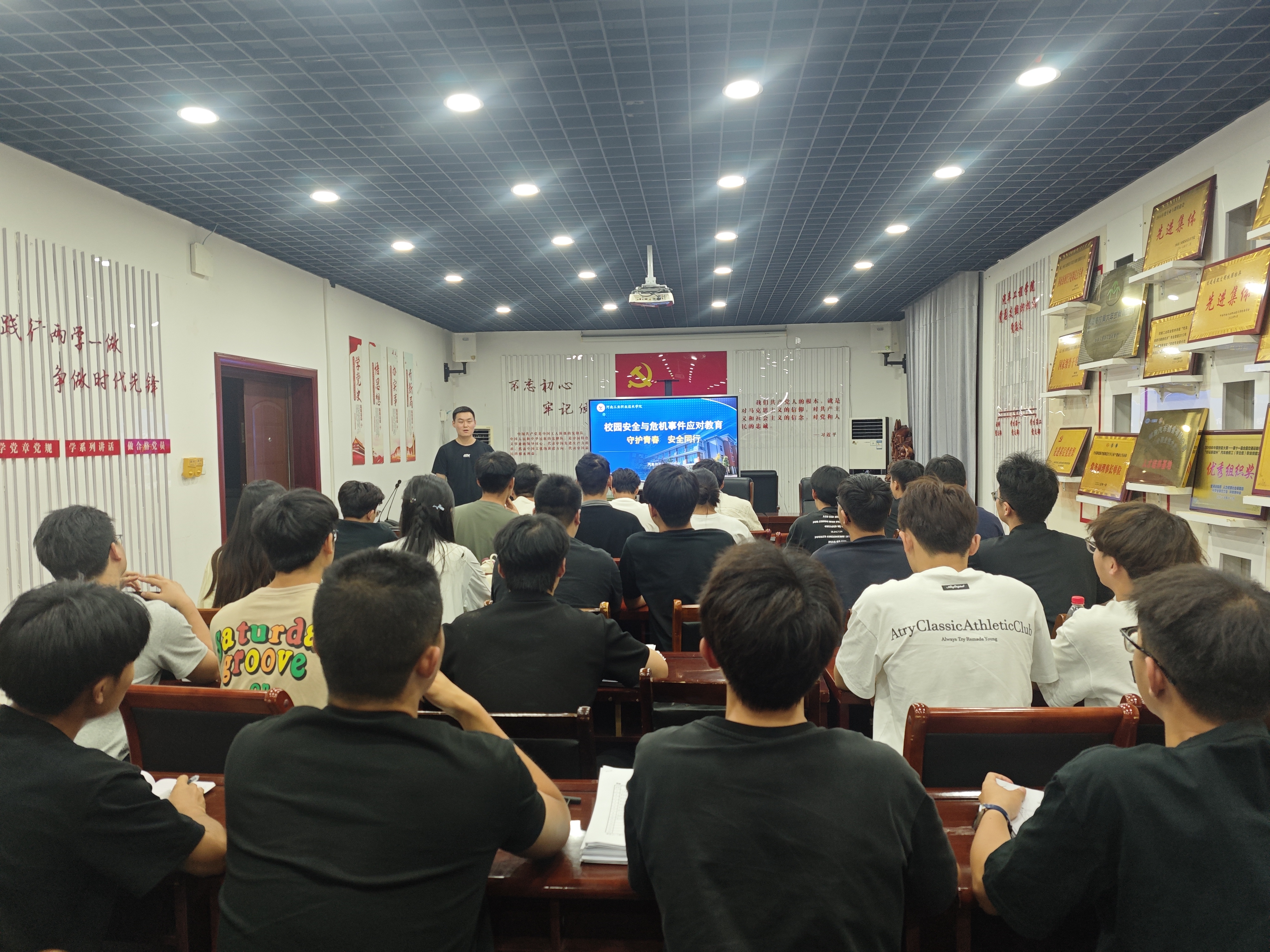 为强化校园安全防线,提升学生干部的安全防范意识与突发事件处置能力,发挥学生干部在校园安全网络中的骨干作用,6月15日晚上,汽车与航空工程学院在学院会议室开展校园安全与危机事件应对教育专题培训。学院各班级班长、大学生自律委员会、学生会等主要学生干部参加培训。