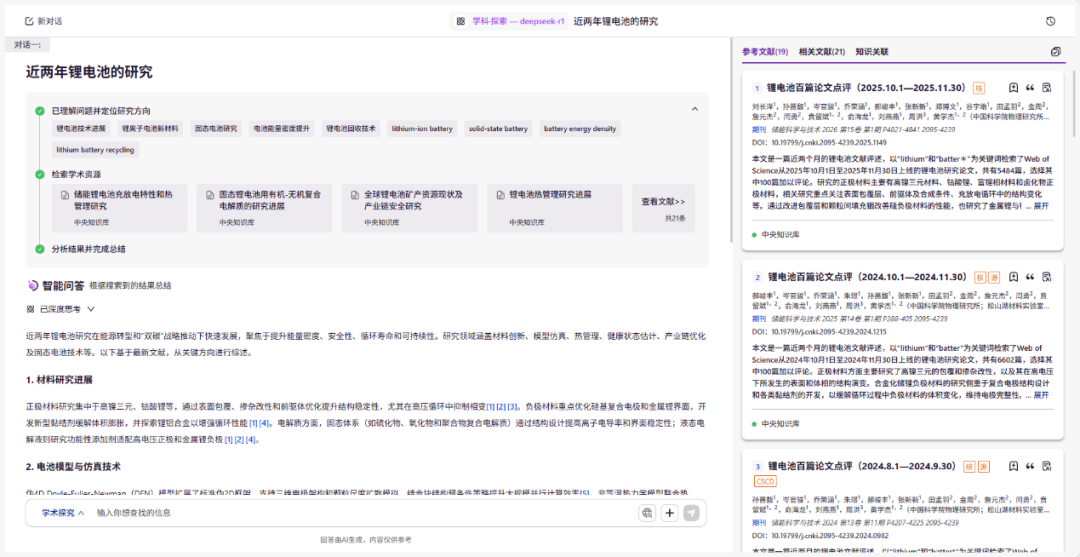 写综述、做调研报告,是科研中最耗时的工作之一,Deep Research深度研究引擎正是为此而生。它不仅仅是简单的问答(Chat),而是具备专业策划与执行能力的专家级深度调研(Research)。