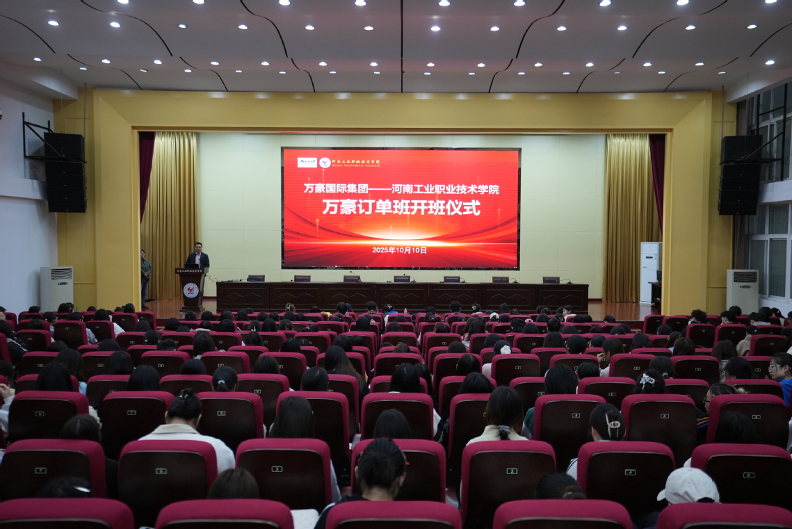 为深化校企协同育人,拓宽学生就业渠道,10月10日,文化旅游与国际教育学院组织2026届旅游管理专业群毕业生参加万豪国际集团订单班开班仪式,本次活动由万豪国际集团河南区域代表王阳担任主讲,学院相关领导、部分教师以及2026届旅游管理专业群全体学生参加。