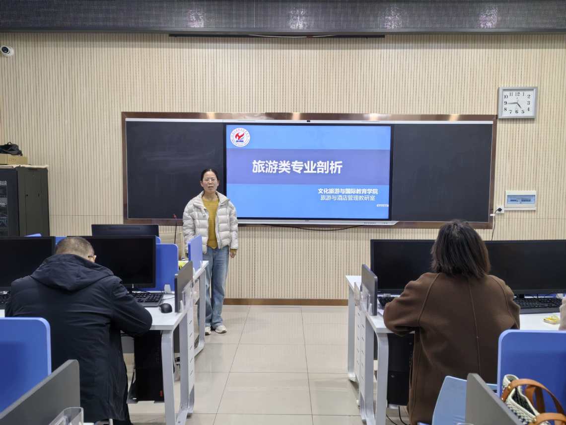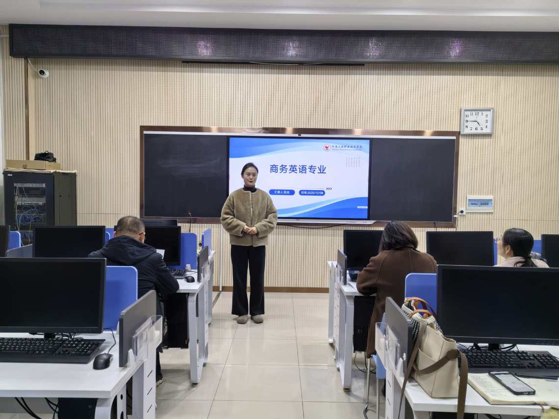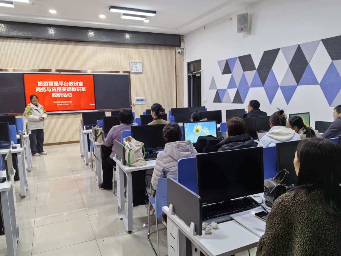 旅游管理平台教研室与商务与应用英语教研室在图书馆T1416联合举办了以“金教材”开发与建设为主题的教研活动,采用线上线下相结合的虚拟教研形式,特别邀请了校外合作企业——河南翼科网络科技有限公司的资深导师邢革线上同步参与。校企双方围绕《商务英语函电》《秘书实务》等课程教材的高品质建设,展开了深入务实的探讨。企业导师立足行业实际需求,针对教材内容的实用性、案例的时效性以及技能训练的针对性提出了宝贵建议;教研室教师则结合教学实践,围绕知识结构、教学设计与企业方展开充分交流,共同探寻教材编写如何更好地融合理论知识与职业能力,提升教材的适用性与前瞻性。活动第二阶段,全体教师再度集体学习了《河南省高等职业学校办学能力评价实施方案(2025—2030年)》等重要文件,并开展了第二轮“说课程”活动。教师们依次呈现课程建设思路,交流教学改革经验,于交流互鉴中共同提升课程设计与实施能力。