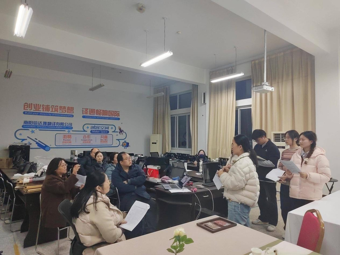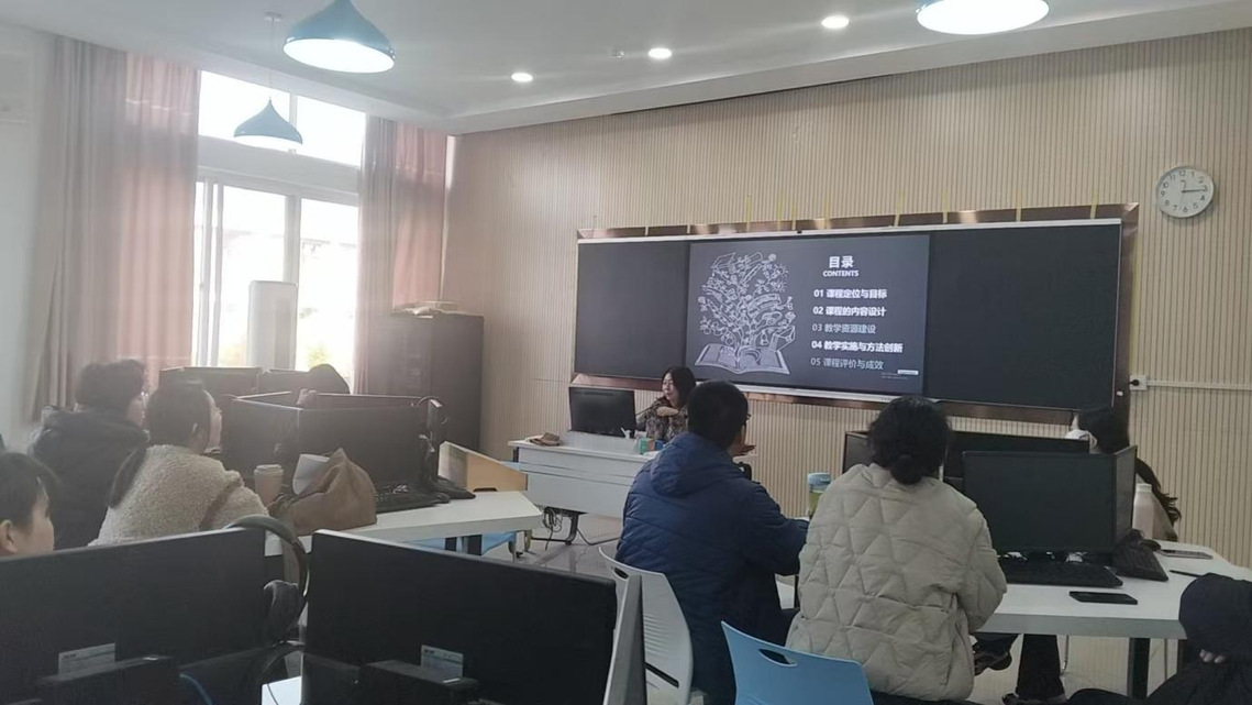 公共外语第一、第二教研室于图文信息楼T1415联合开展教研活动,组织教师进行说课。毛琰虹、张敏、陶晋宇、秦一鸣等教师从“目标—内容—实施—评价”四个维度出发,对《大学英语》课程展开深入剖析。教师们围绕“能力导向”和“实践创新”展开汇报。《大学英语》作为公共基础必修课,以“基础语言+职业应用+文化素养”为目标,同步培养学生的语言能力、跨文化交际能力以及职业沟通素养。课程内容采用“岗课赛证”融合模式,构建动态更新机制;形成“教材 + 数字资源”的教学资源体系,推行“线上 + 线下”混合教学模式,结合情景模拟、项目式学习等方式,利用学习通、U校园等工具加强课上课下互动。本次说课活动特邀督导胡玲玲、程国红出席。程老师对《大学英语》课程“岗课赛证”融合的建设思路给予肯定,认为课程目标定位精准、教学实施路径清晰。同时,针对说课内容提出优化建议,着重强调要进一步提升课程内容与不同专业的适配性,让“能力导向”更贴合学生职业发展需求,为教师后续教学改进和竞赛备赛提供明确指引。随后,教师们围绕教学设计创新以及职教特色融合路径展开研讨,分享信息化教学技巧,明确了技术赋能教学的具体举措。此次活动为教师搭建了成长平台。教研室将把活动成果应用于日常教学,以“以赛促学、以研促教”推动团队教学水平提升。