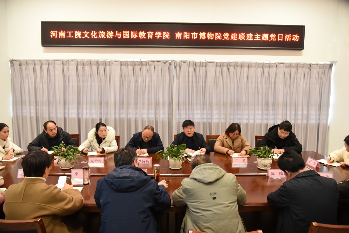 为深入学习贯彻习近平新时代中国特色社会主义思想和党的二十大精神,扎实推进基层党组织结对共建,深化文化传承与育人实践融合,1月6日下午,文化旅游与国际教育学院党总支联合南阳市博物院党总支,开展“探寻南阳文脉,共话传承创新”主题党日活动。