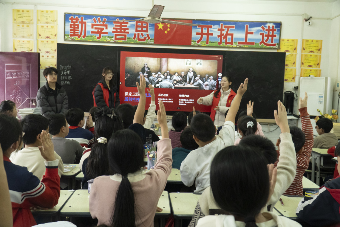 互动问答环节成为活动高潮。“井冈山精神中,哪一点体现了面对困难不退缩的态度?”“红军在井冈山时期依靠什么力量战胜了敌人?”一系列紧扣主题的问题抛出后,孩子们纷纷举手抢答,现场气氛瞬间升温。答对的同学收获了志愿者带去的小小纪念品通过此次活动,学生们纷纷表示知道了革命先辈的不易,以后会更加努力学习。
