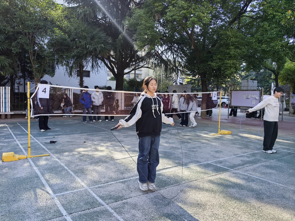 比赛现场气氛热烈,秩序井然。个人赛中,参赛同学们个个精神抖擞,身轻如燕,手中的跳绳飞快舞动,划出一道道优美的弧线,场边观众的加油声、计数声、欢呼声此起彼伏,将比赛不断推向高潮。集体跳绳则更加考验班级的默契与配合,队员们需要步调一致,节奏统一,每一次成功的衔接都凝聚着团队的智慧与汗水,充分展现了2025级新生良好的精神风貌和强烈的集体荣誉感。经过三天的激烈角逐,各项奖项花落有家。比赛最终评选出男子个人跳绳前八名、女子个人跳绳前八名和班级集体跳绳一、二、三等奖。