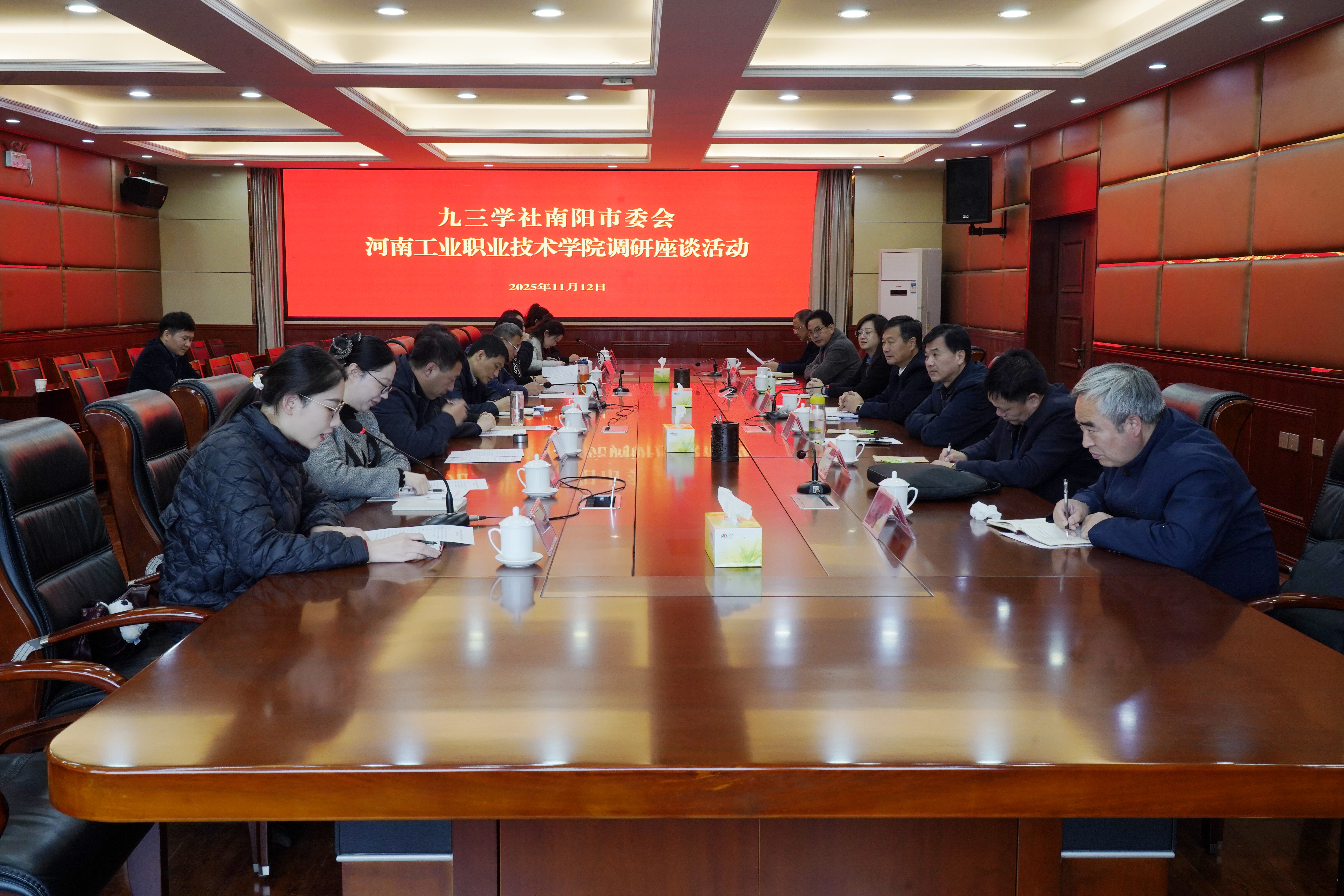 11月12日,南阳市政协副主席李敬铎带领九三学社南阳市委委员到校调研指导工作。学校党委副书记马小兵陪同调研,党委统战部、九三学社河南工院支社部分社员参加调研座谈。
