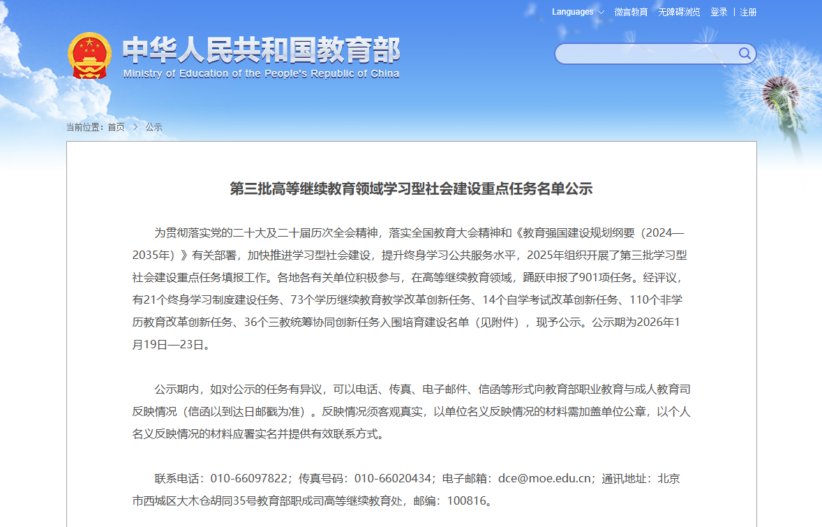 本次入选是教育部落实学习型社会建设和教育强国战略的重要举措,第三批重点任务围绕学历继续教育改革、非学历教育创新等五大方向遴选,全国共评选出110个非学历教育改革创新任务,我校凭借鲜明的军工产业特色和创新的育人模式成功跻身其中。