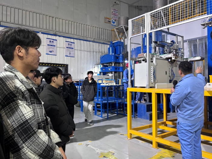 随后,同学们走进电阻片生产车间。作为全国最大的高压压敏电阻片生产基地,这里全流程自动化、信息化的生产线令人瞩目。从氧化锌原料配料、球磨造粒,到高温烧结、喷铝涂覆,再到雷电冲击测试与参数校准,技术人员详细讲解了每一道工序的原理与标准,让同学们深入了解了低残压、高能量吸收的优质电阻片如何为电力系统安全筑牢防线。大家驻足观察智能设备的精准运作,不时就工艺细节、质量管控等问题与工程师交流探讨,将课堂上的电气理论知识与实际生产场景对应衔接。