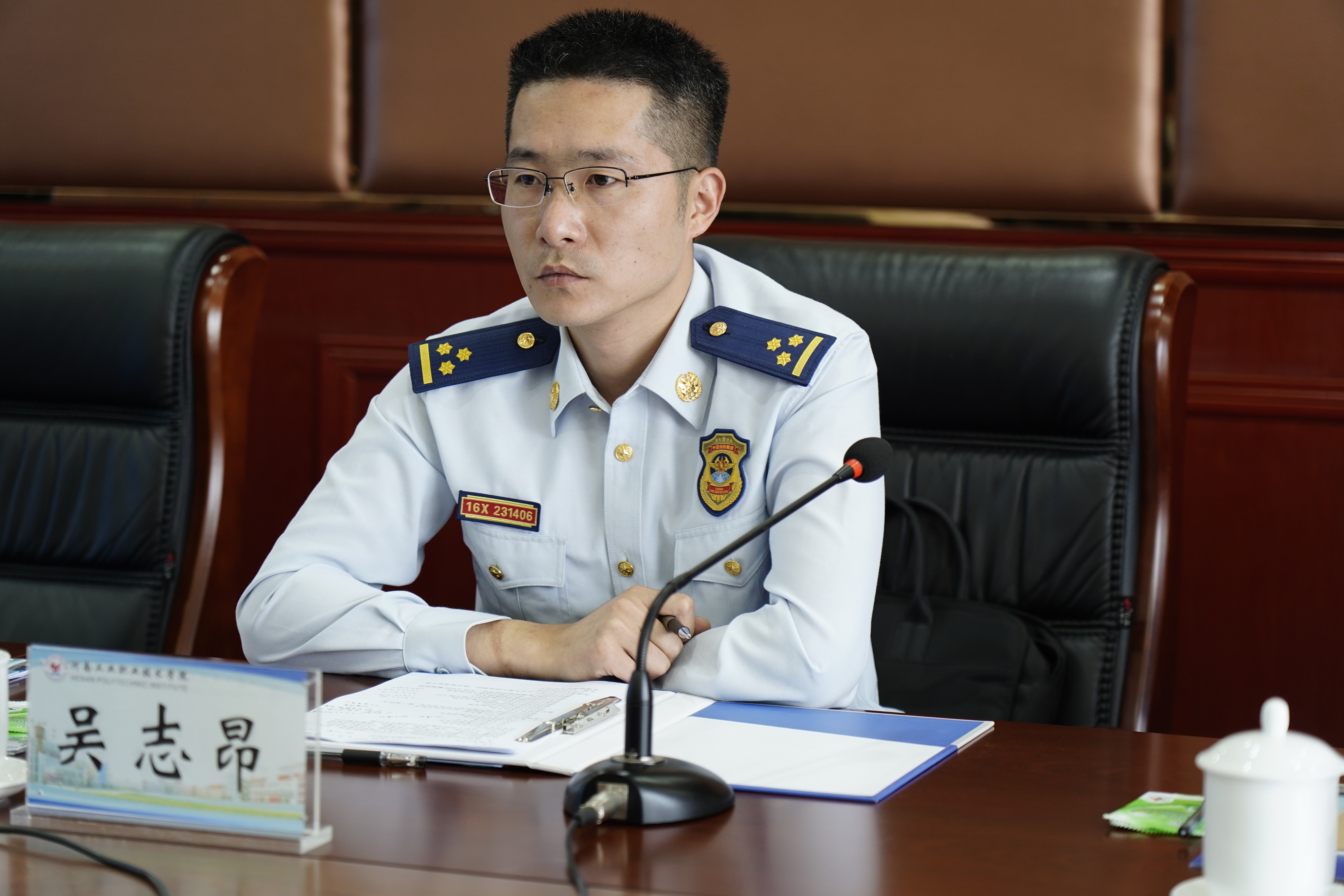 赵志昊介绍了各级党委、政府关于防汛工作的安排部署,从防汛工作指导思想及原则、指挥体系及职责、应急物资储备、暴雨预警的标准等四个方面详细阐述了防汛工作各个环节的有关政策和要求。朱军介绍了南阳市公安系统防汛应急演练组织开展情况,分别从隧道救援、通讯保障、荒岛被困人员救援等方面讲解了灾情发生后的应对措施,并着重强调了应急演练的实战性和注意事项。吴志昂指出高校防汛主要是城市洪涝灾害,有充足的时间防范,主要任务是保证好人的安全,并重点讲解了在救援基本原则,强调要注重人的疏散,确保人员安全,同时做好信息畅通、应急食品保障等工作。