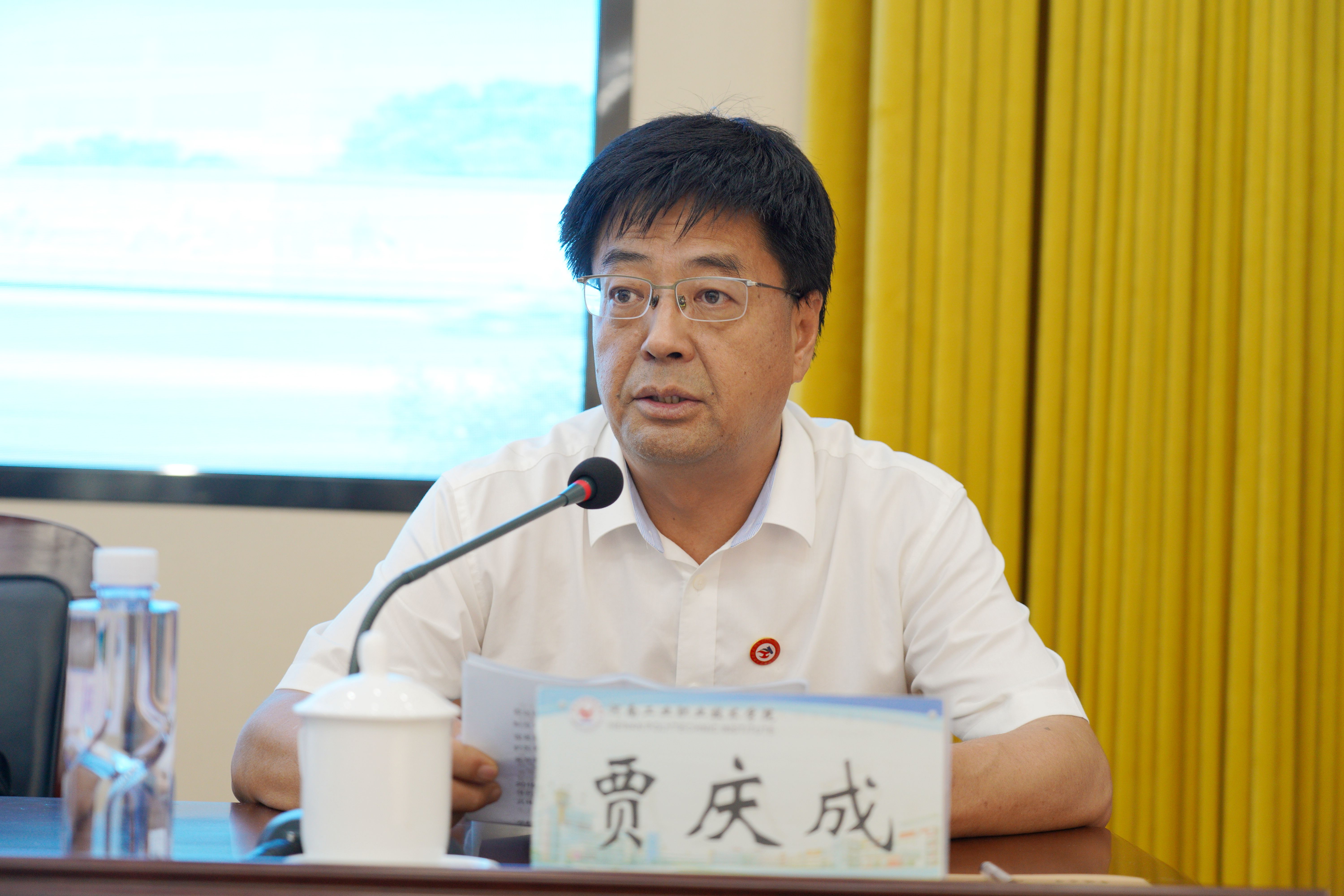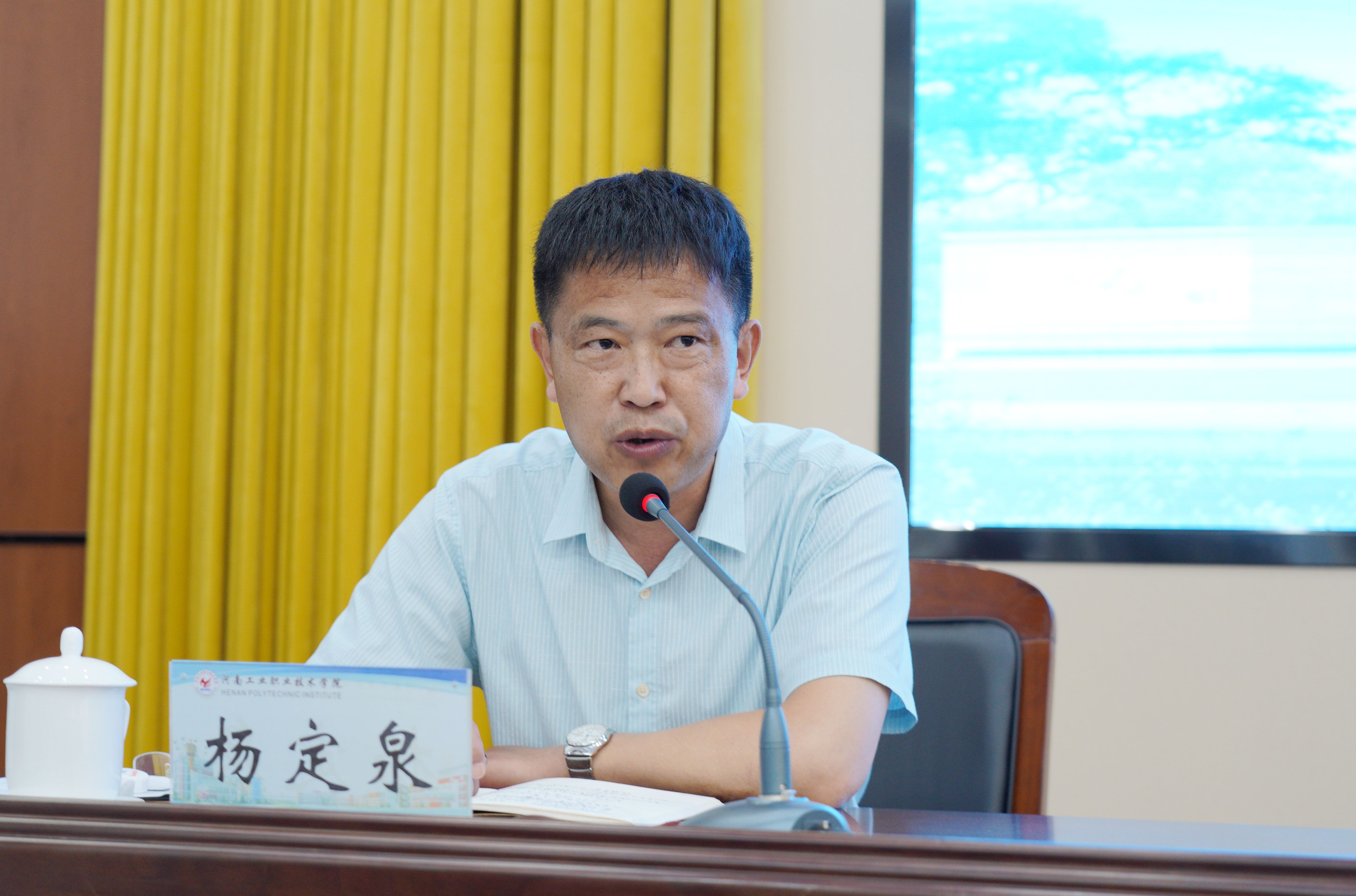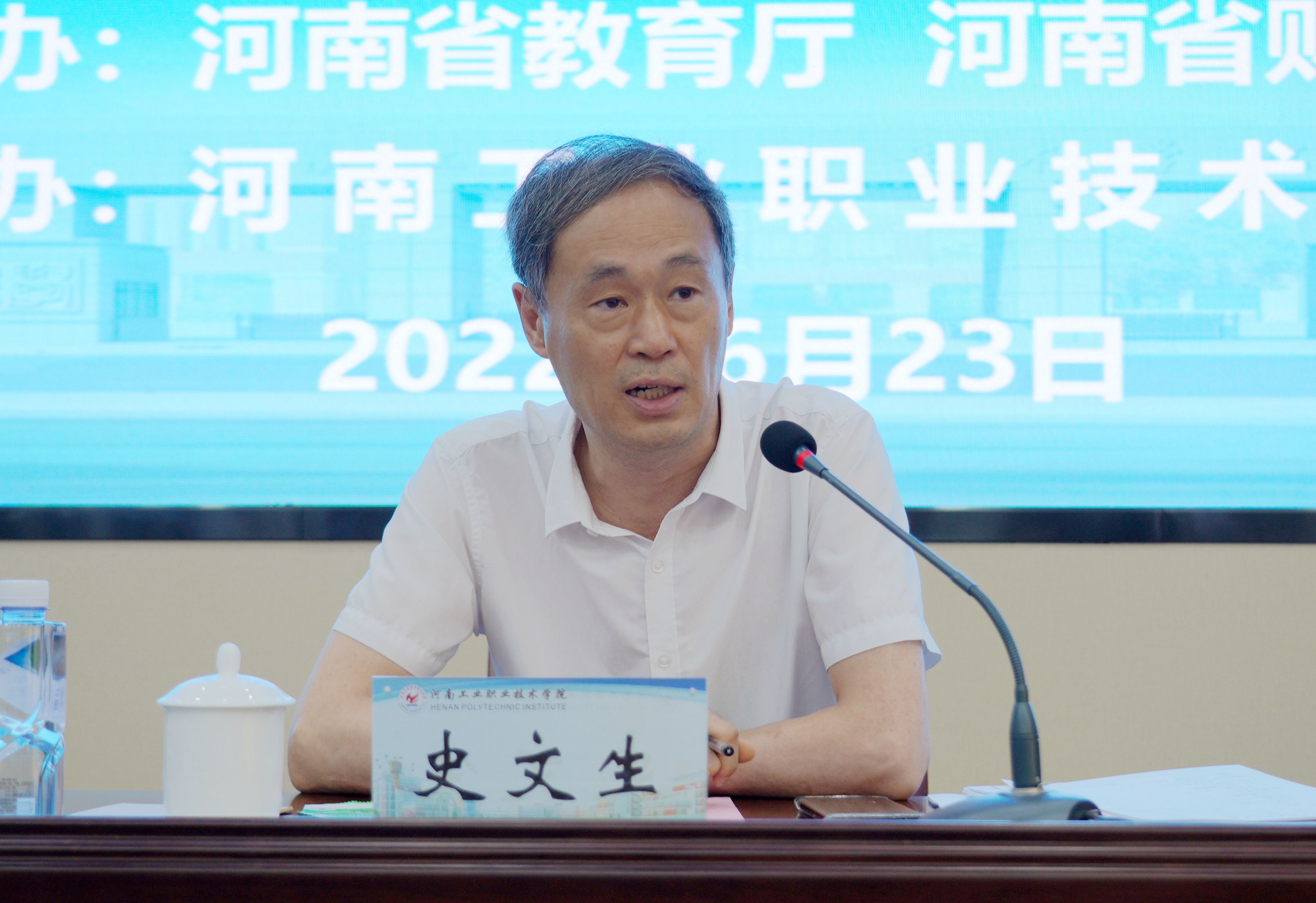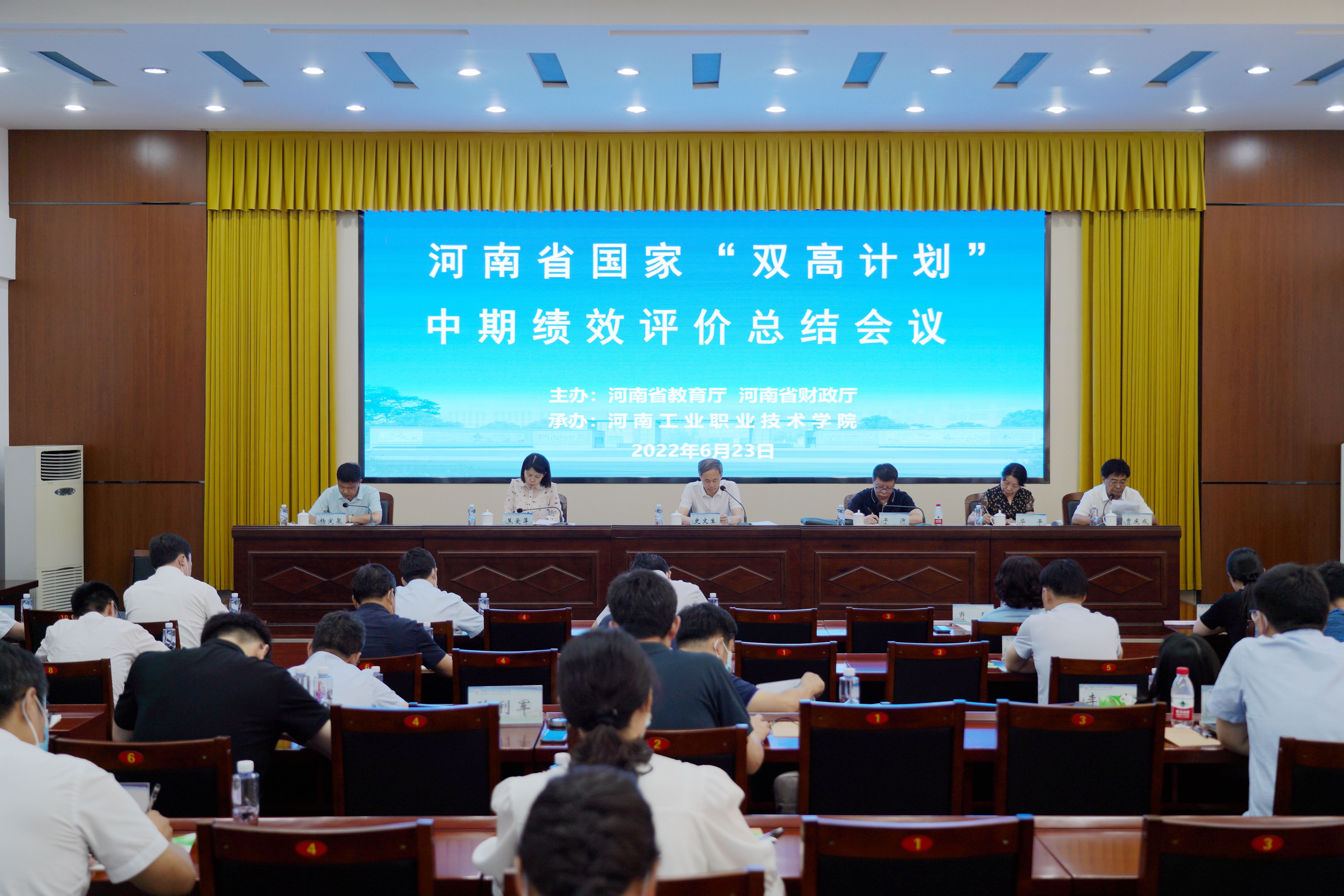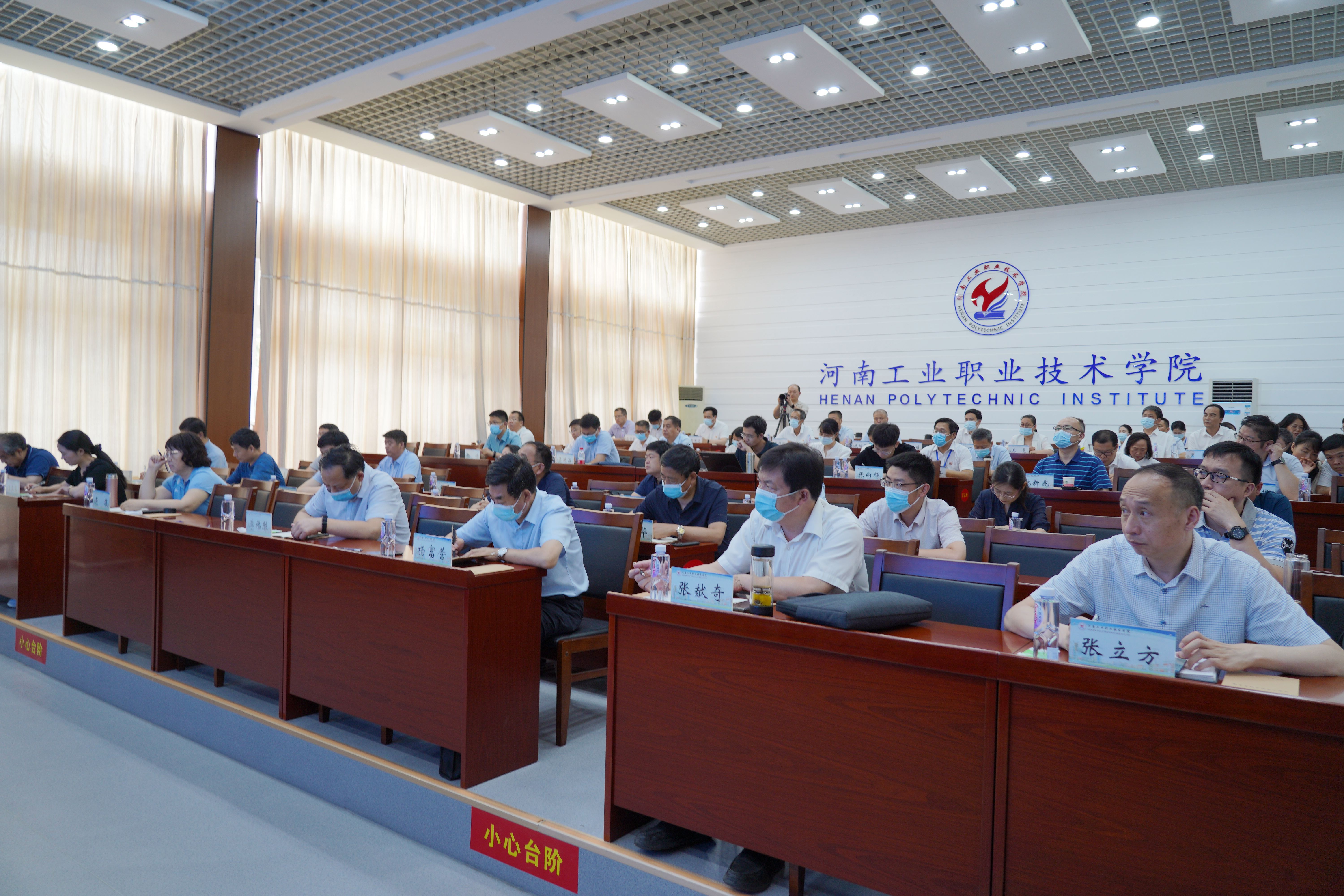 6月23日,省教育厅、财政厅联合主办的河南省国家“双高计划”中期绩效评价工作总结会议在河南工业职业技术学院召开。省教育厅职成教处二级调研员史文生,省财政厅教育事业处副处长于沂,实地考察工作第一专家组组长、河南工业职业技术学院副校长贾庆成,第二专家组组长、黄河水利职业技术学院副校长焦爱萍,特聘专家、郑州铁路职业技术学院教授华平,财务专家代表、郑州航空工业管理学院教授杨定泉出席。专家组全体成员,6所国家“双高计划”建设单位领导参加会议,平顶山工业职业技术学院、河南交通职业技术学院、河南经贸职业学院列席会议。会议由史文生主持。