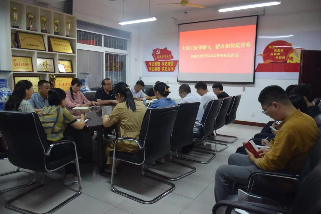 为了进一步加强师资队伍建设,营造良好的教学成长环境,促进新进教师教学能力的提升,增强新进教师的责任心和使命感,10月3日下午,机械工程学院举行2022年师徒见面会活动,学校党委副书记杜建根出席会议并指导工作。