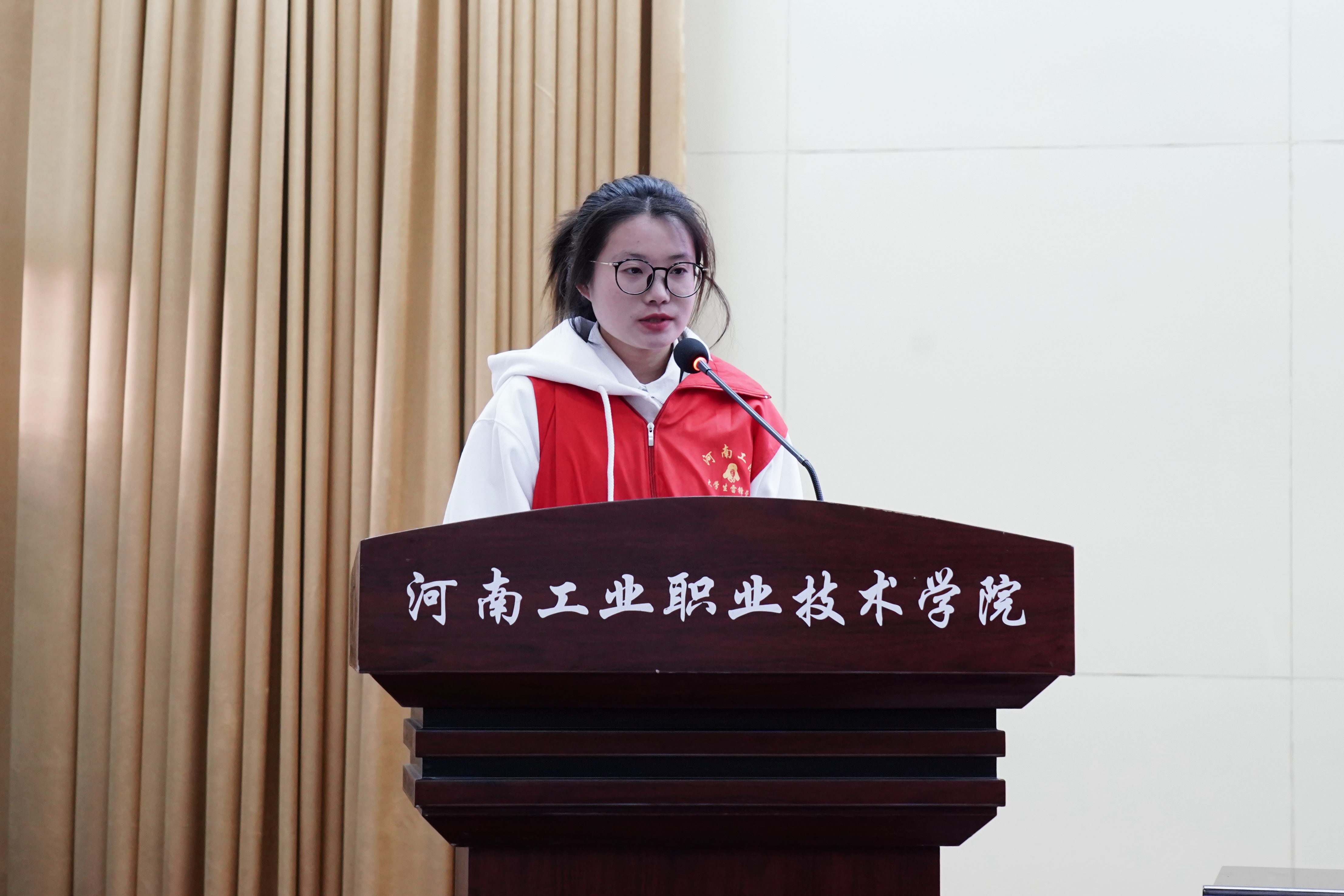 党委学生工作部赵国峰宣读《河南工业职业技术学院2023年“学习二十大 志愿新时代”学雷锋志愿服务活动方案》,就学校2023年度学雷锋志愿服务活动作出具体部署。