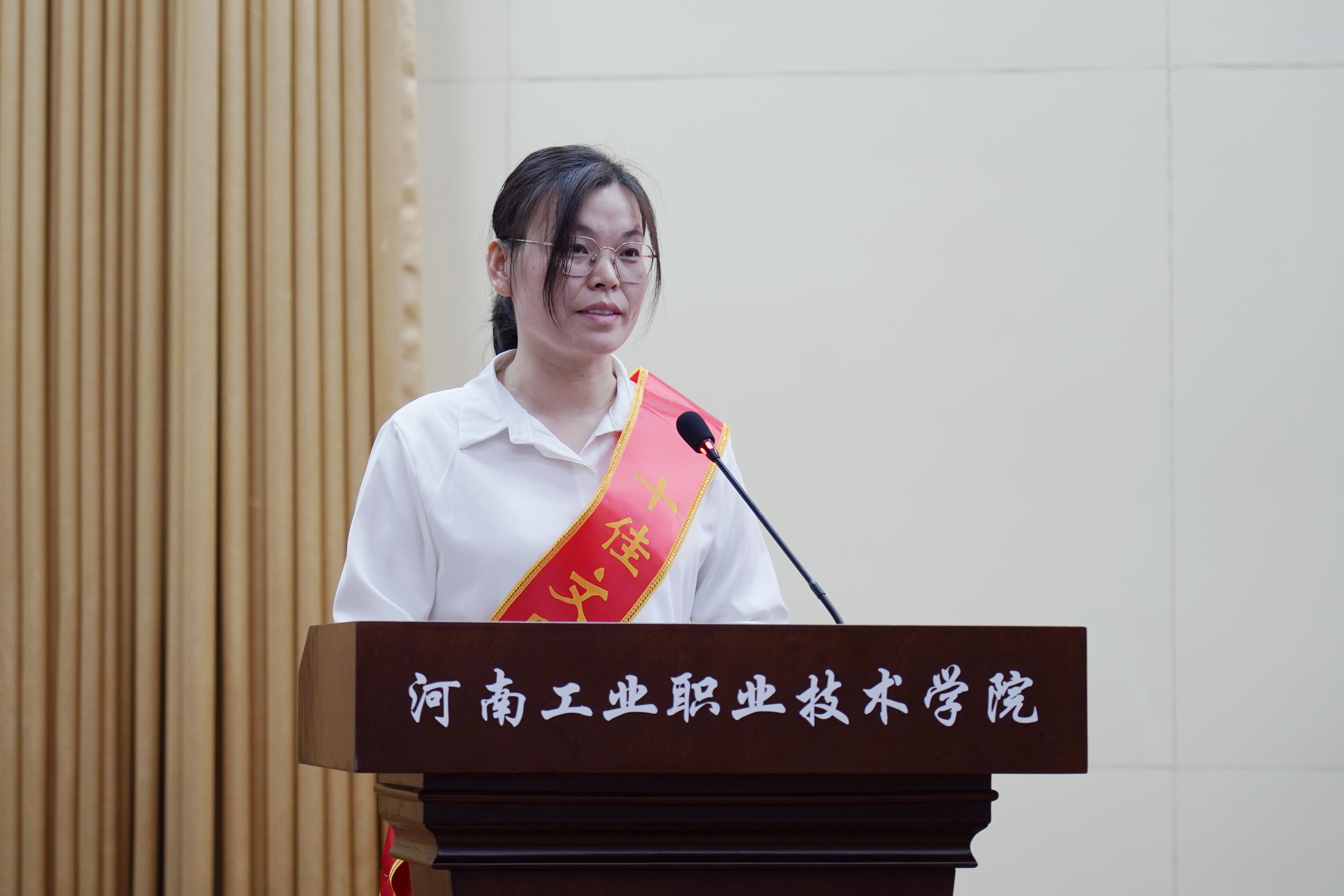 学校“文明单位”代表王兴举,“文明教研室”代表韩明睿,“十佳文明教职工”代表王洪燕,“十佳文明学生”代表刘少帅分别作交流发言。