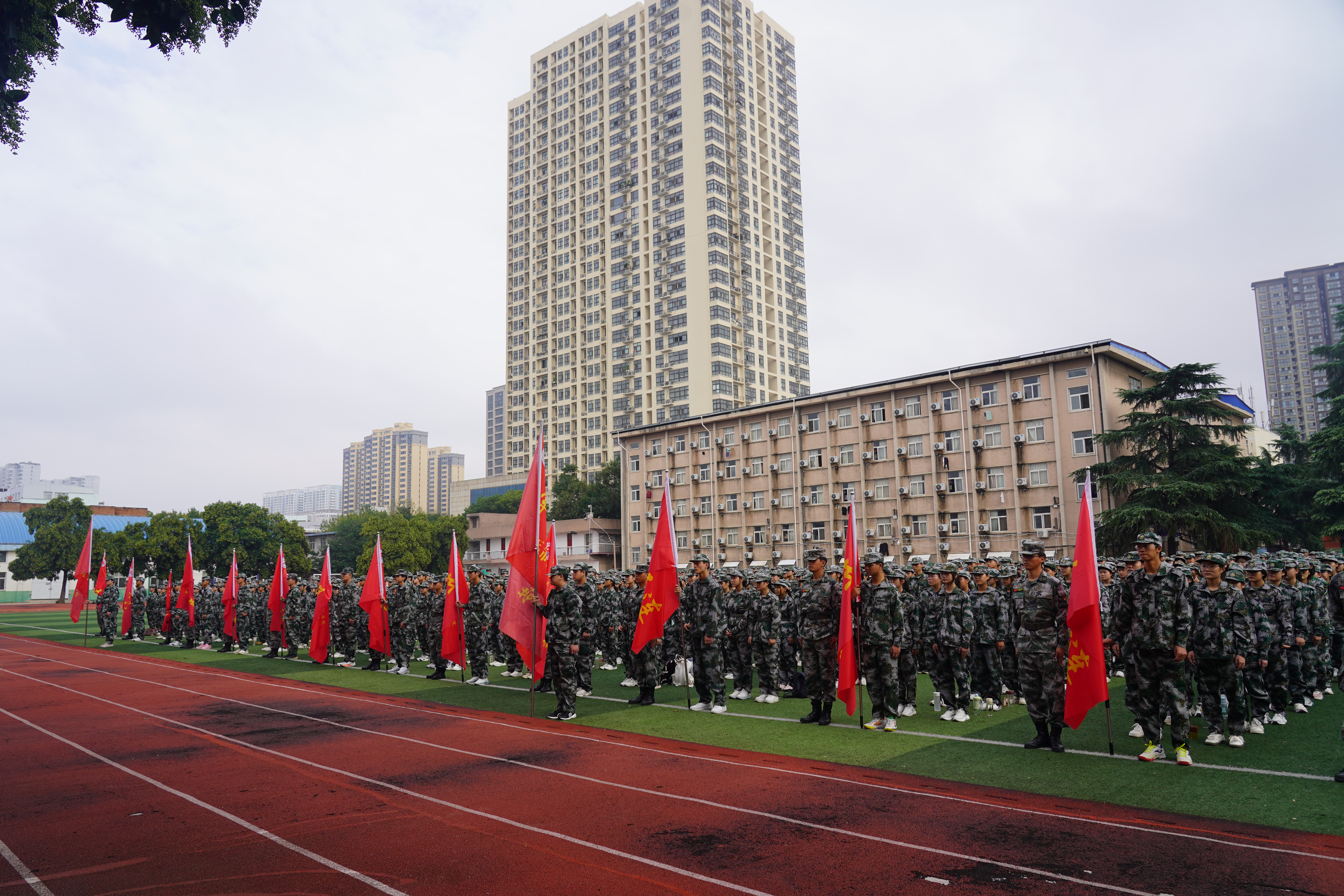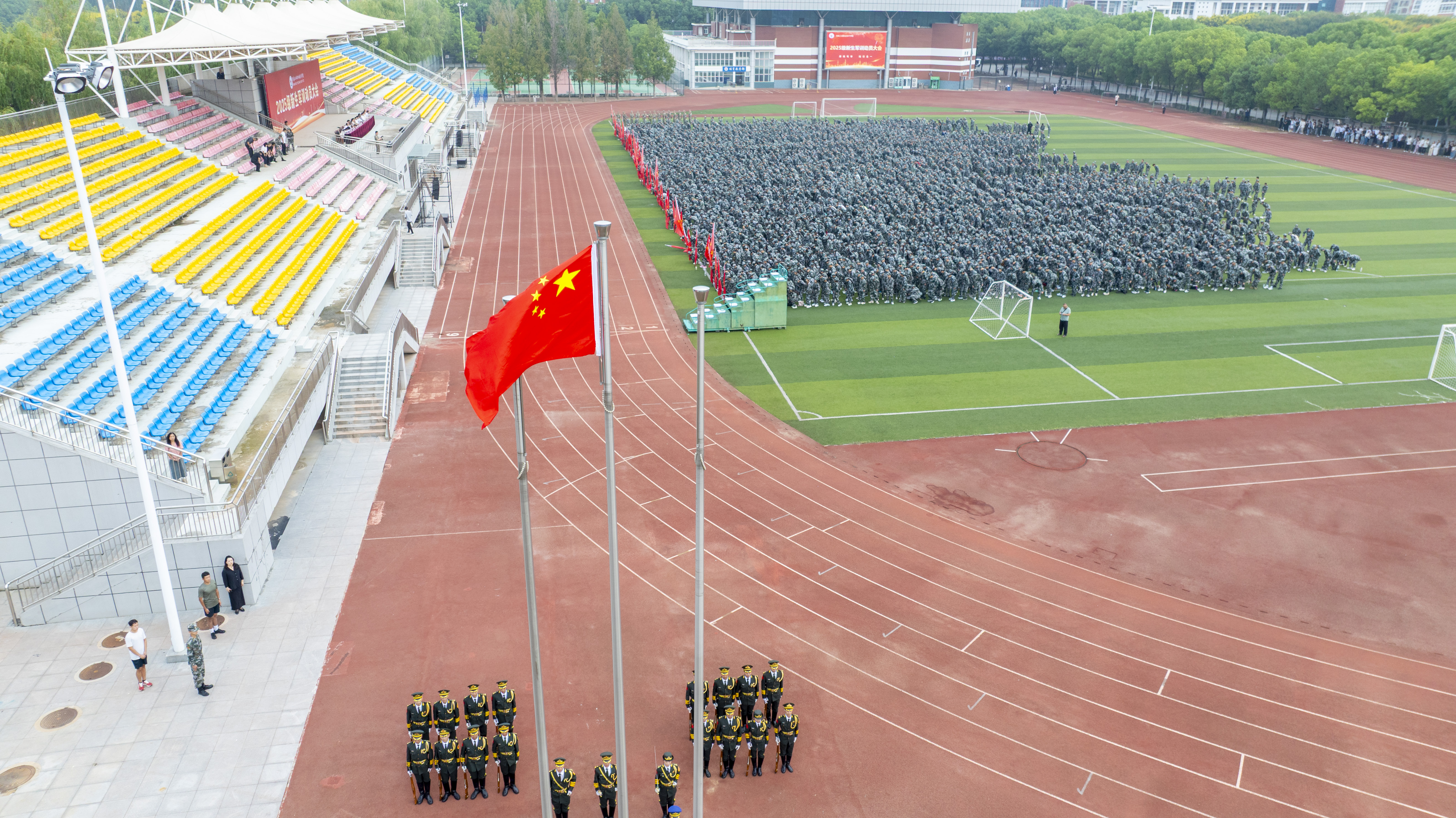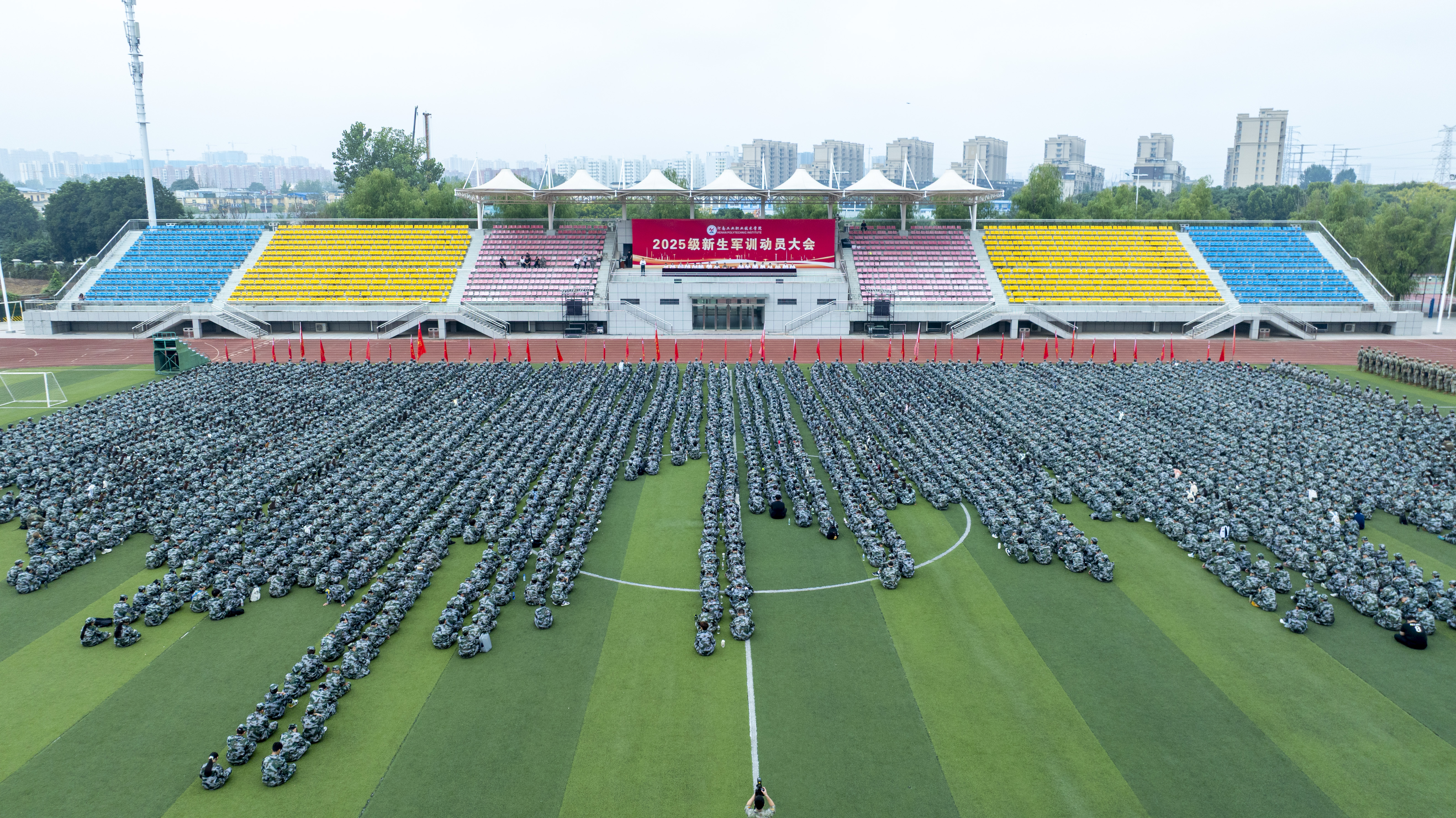秋阳溢彩,惠风和畅。在中国人民抗日战争暨世界反法西斯战争胜利80周年和第41个教师节来临之际,学校于9月10日上午分别在孔明校区和光武校区举行了2025级新生军训动员大会。校领导马小兵、贾庆成、冯书丽、王宏颖,以及有关职能部门和教学单位党政负责人出席,2025级全体新生、承训教官、辅导员和新生班主任参加大会。