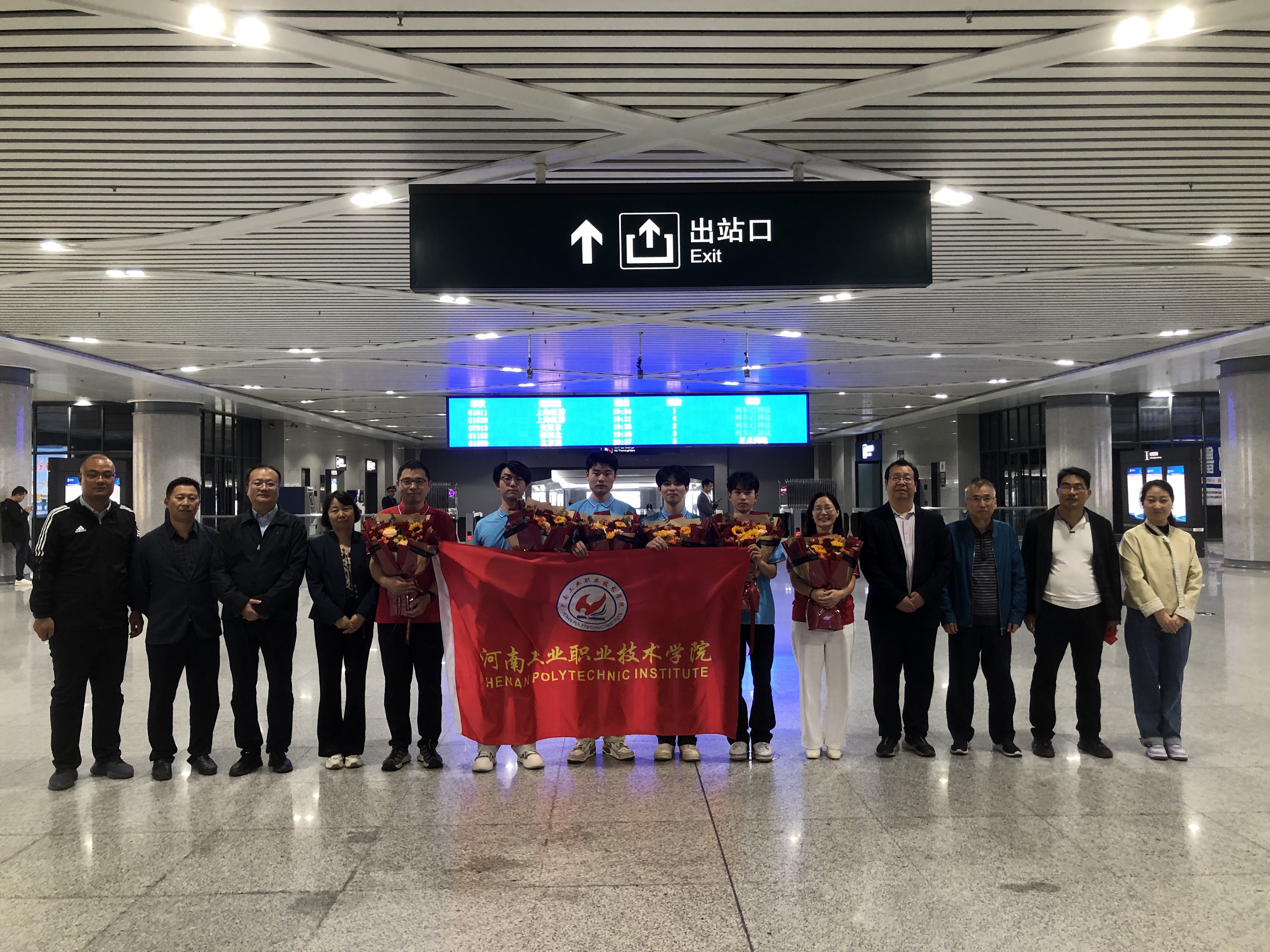 9月16日-22日,2025年世界职业院校技能大赛总决赛争夺赛机电设备安装与运维赛道在天津机电职业技术学院圆满落幕。由我校胡殿耿、张峻嘉、陈坤和张一恒四位同学组成的参赛队,在秦拓、郭素娜两位老师的精心指导下,从来自全国的90支参赛队中脱颖而出,喜获金奖,为学校职业教育高质量发展再添浓墨重彩的一笔。22日晚,教务处、自动化工程学院负责人赴南阳高铁站迎接获奖师生。