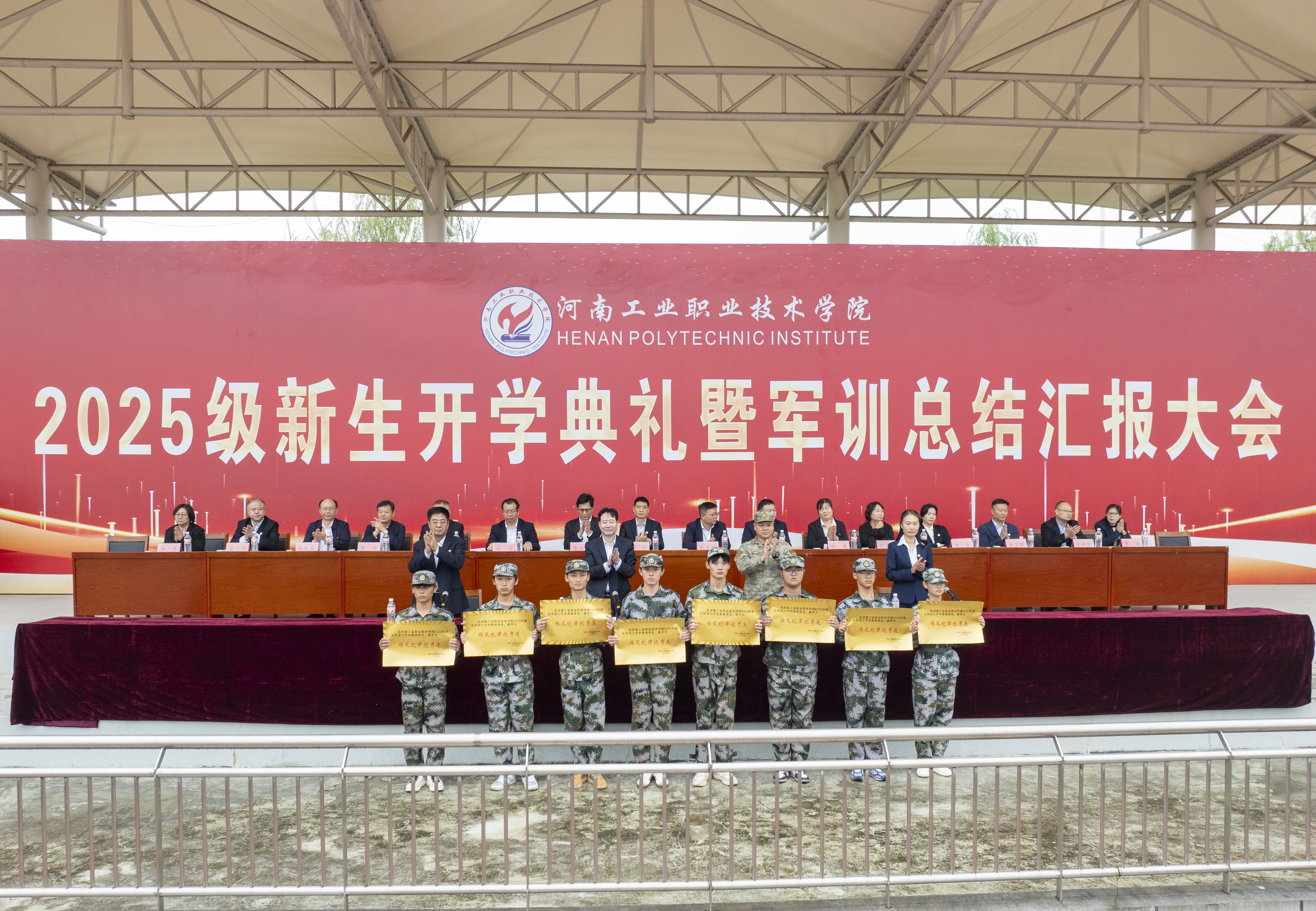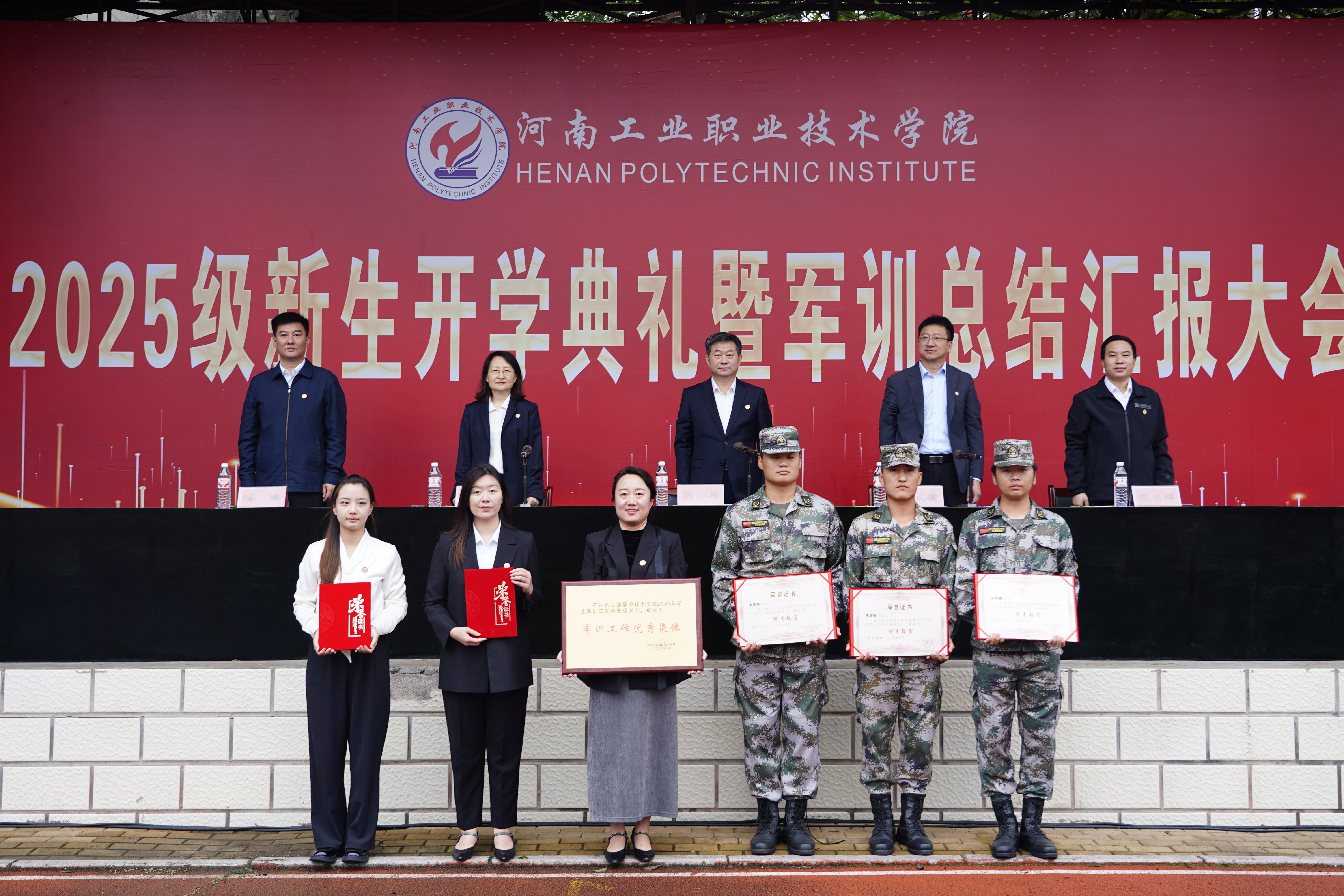 副校长冯书丽、王宏颖分别宣读了光武校区和孔明校区表彰决定。与会领导向10个训练工作优秀连、10个作风纪律优秀连、10个内务整理优秀连、11名优秀指导员、11名优秀教官、3个军训工作优秀集体颁发证书。