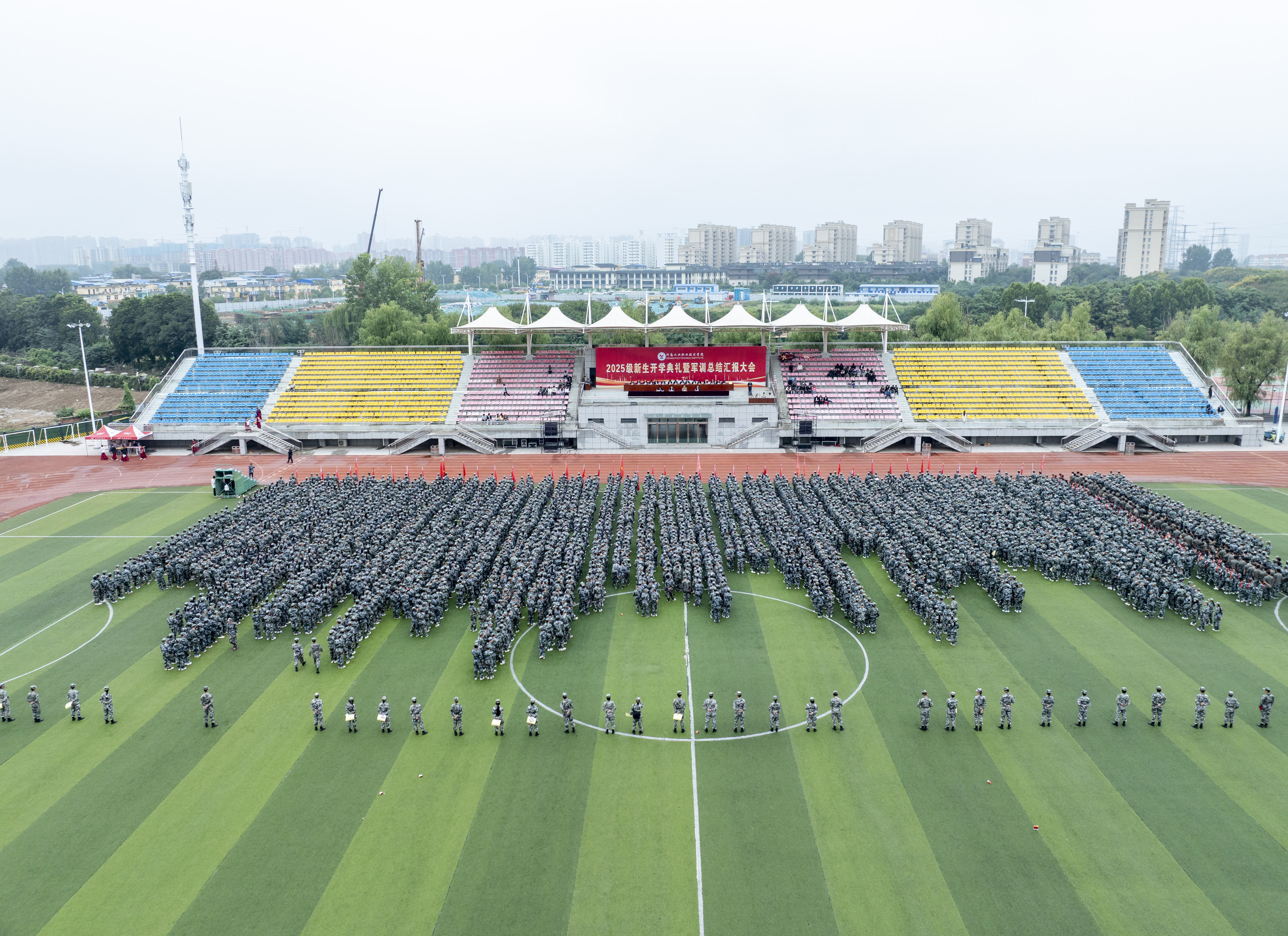 9月30日上午,我校2025级新生开学典礼暨军训总结大会分别在孔明校区、光武校区同时举行,校领导屈保中、马小兵、贾庆成、朱成俊、冯书丽、王宏颖出席,相关职能处室负责人、各学院(中心)党政负责同志,全体辅导员、班主任、承训教官及全体新生参加大会。大会分别由副校长贾庆成、副校长朱成俊主持。