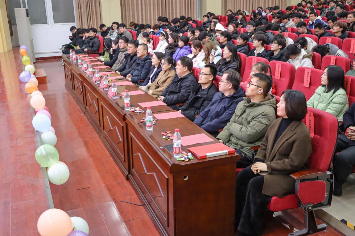 晚会节目形式多样、精彩纷呈。Demo器乐社带来的乐队歌曲《海阔天空》瞬间点燃现场气氛,激昂的旋律让观众沉浸其中;小品《和谐社区》《梁山情义》以幽默诙谐的表演传递生活温情与情义担当;汉服社的走秀尽显传统服饰之美,戏曲《穆桂英挂帅》唱响国粹韵味,武术协会的《万象更新·武动新年》则展现出刚劲有力的中华武术魂。抽奖环节的惊喜互动,更是让现场欢呼声此起彼伏。此外,《如愿》《只对你有感觉》等歌曲演唱、舞蹈《光亮》、经典朗诵《诗颂风华》等节目轮番上演,为观众带来了一场多元的艺术体验,大合唱《明天会更好》更是将晚会的氛围推向高潮。晚会尾声,赵洋登台演唱《栀子花开》,熟悉的旋律唤起全场师生的青春回忆,元旦晚会也在这欢声笑语中圆满落幕。