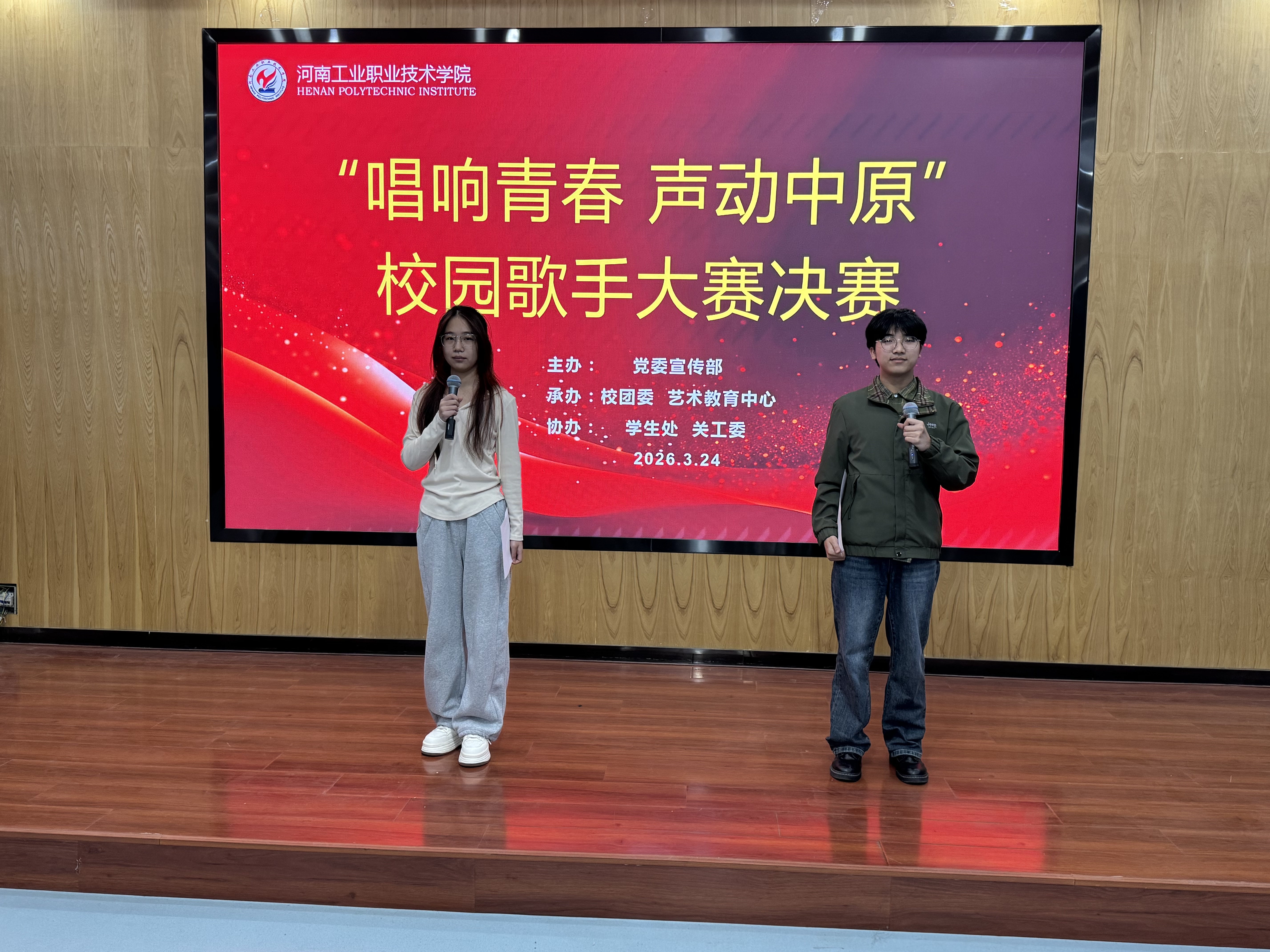 为深入学习贯彻习近平总书记关于教育的重要论述和学校美育工作的重要指示批示精神,落实河南省教育厅相关赛事要求,搭建校园美育展示交流平台,选拔优秀选手代表学校参加河南省“唱响青春 声动中原”比赛,营造青春昂扬、积极向上的校园文化氛围,我校于2026 年 3 月 24 日在图文信息楼T1126成功举办河南省大学生校园歌手大赛校级选拔赛。本次赛事由党委宣传部主办,艺术教育中心、校团委联合承办,全校学生积极参与,用歌声传递青春力量,用旋律书写校园风采。