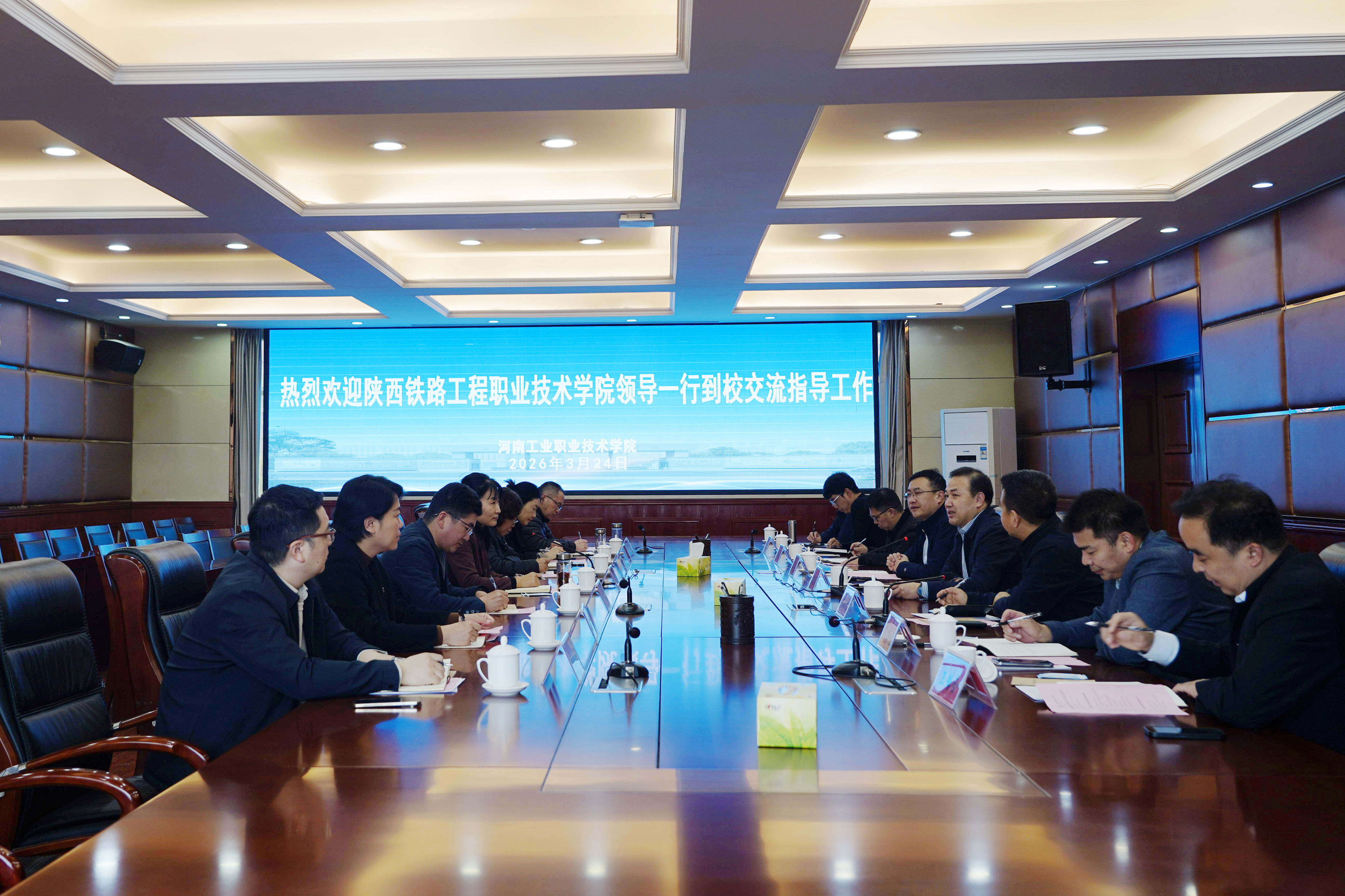 3月24日,陕西铁路工程职业技术学院副校长贺建锋一行到我校调研交流工作。学校副校长王宏颖出席调研座谈会,相关部门同志参加会议,座谈会由王宏颖主持。