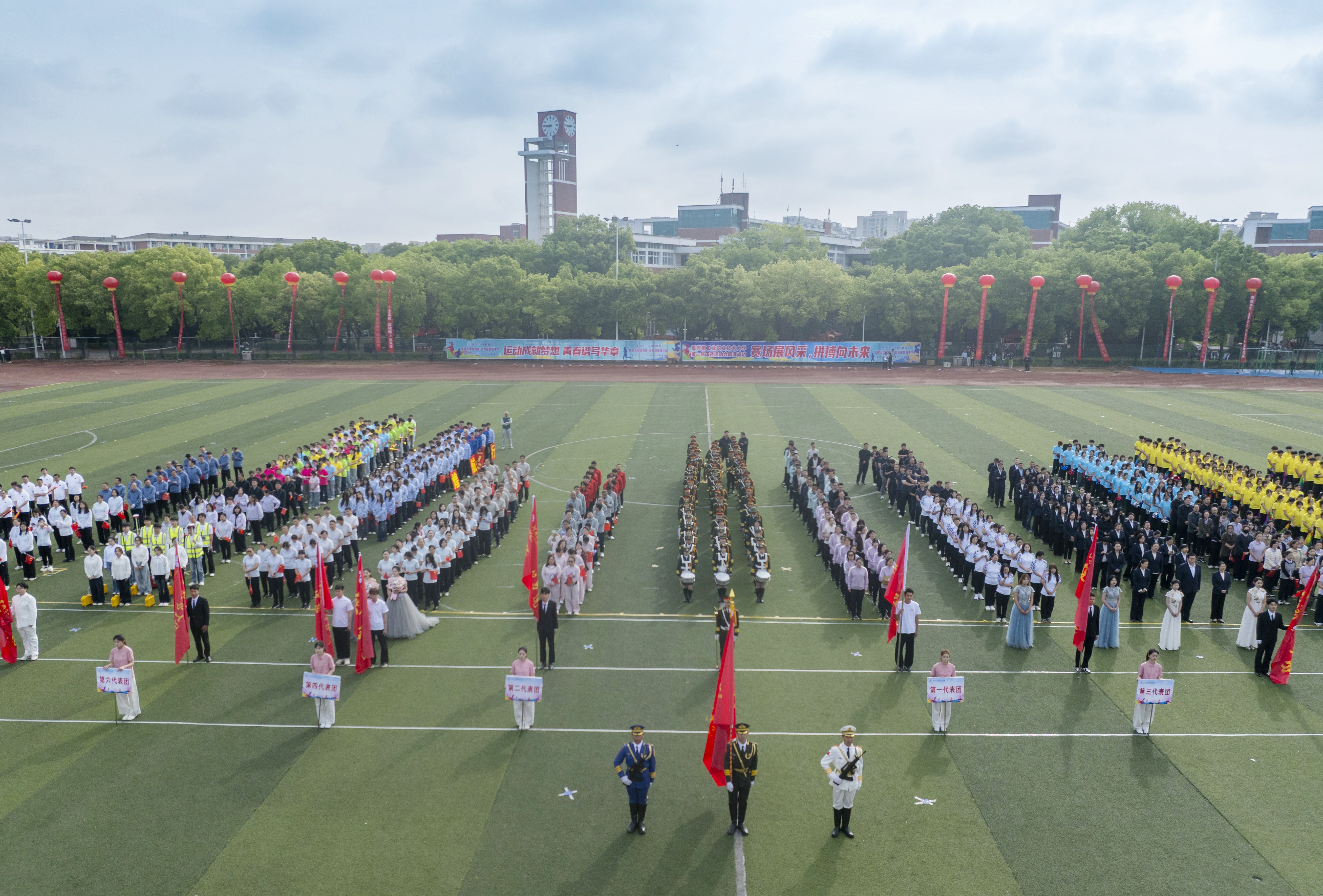 开幕式上,千余名学子以绿茵为卷、以青春作笔,手持彩扇、花伞与彩带,在队形流转间绘就“大国工匠”的铮铮誓言,回溯建校初心的历史坐标,致敬升格职业技术大学的崭新征程。扇影翻飞如电路奔涌,伞花旋转似青春绽放,流动的彩虹汇聚成同心圆,每一次起落都是奋进的节拍,每一声呐喊都是时代的回响。从匠心方阵的严谨默契,到大地经纬的青春律动;从奔跑而来的活力新程,到海潮奔涌的昂扬姿态——每一个节目都凝聚着对工匠精神的坚守、对军工血脉的传承、对未来的无限憧憬。尾声时刻,数百名学子汇成磅礴阵列,步伐整齐划一,气势排山倒海,将整场表演推向最高潮。这是青春与信仰的同频共振,是匠心与梦想的壮丽交响,更是全校师生向建党105周年、向学校奋进新征程献上的最炽热礼赞!