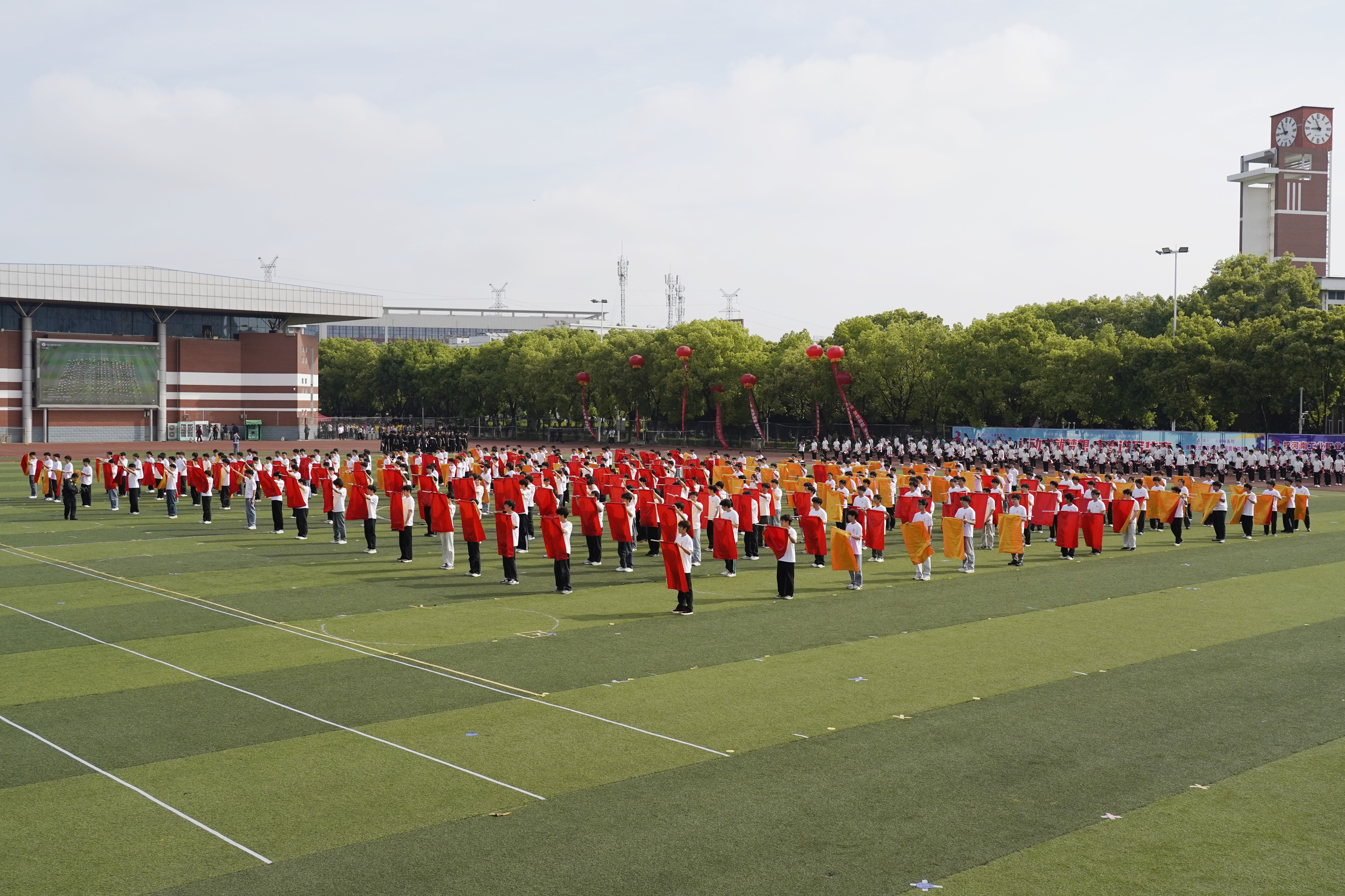 在庄严的国歌声中,五星红旗冉冉升起,全体师生面向国旗肃立并齐唱国歌。随后升学校校旗、运动会会旗,唱校歌。